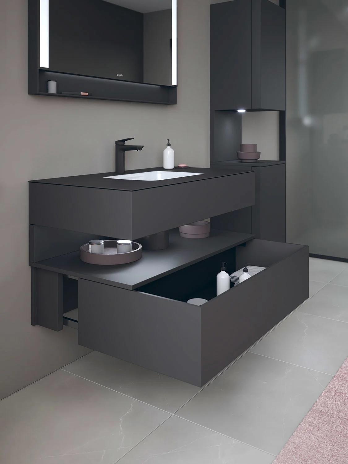 Duravit Qatego Einbauwaschtisch mit Konsolenwaschtischunterbau 80 x 60 cm, 1 Auszug, mit LED Beleuchtung