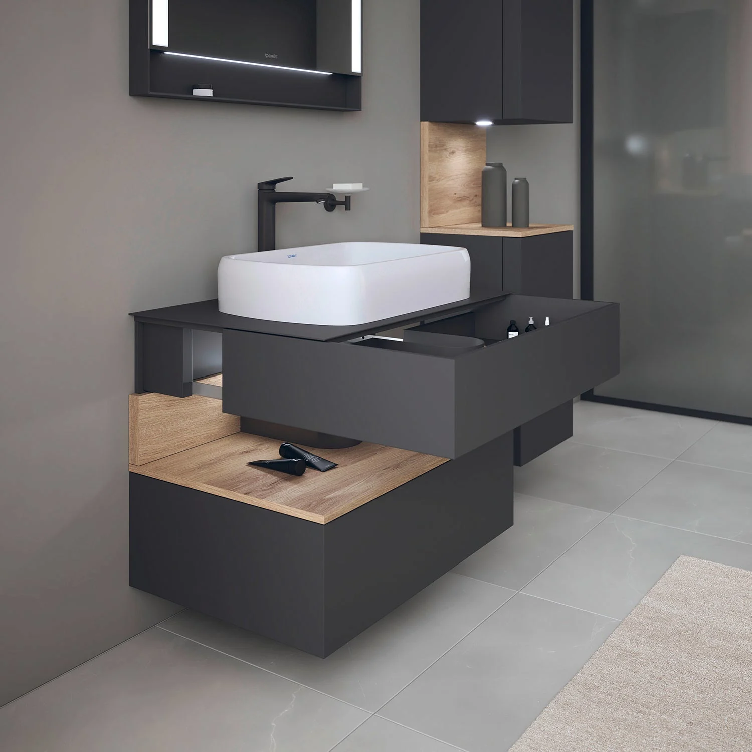 Duravit Qatego Konsolenwaschtischunterbau mit Ausschnitt mittig 80 x 60 cm, 2 Auszüge, mit LED Beleuchtung
