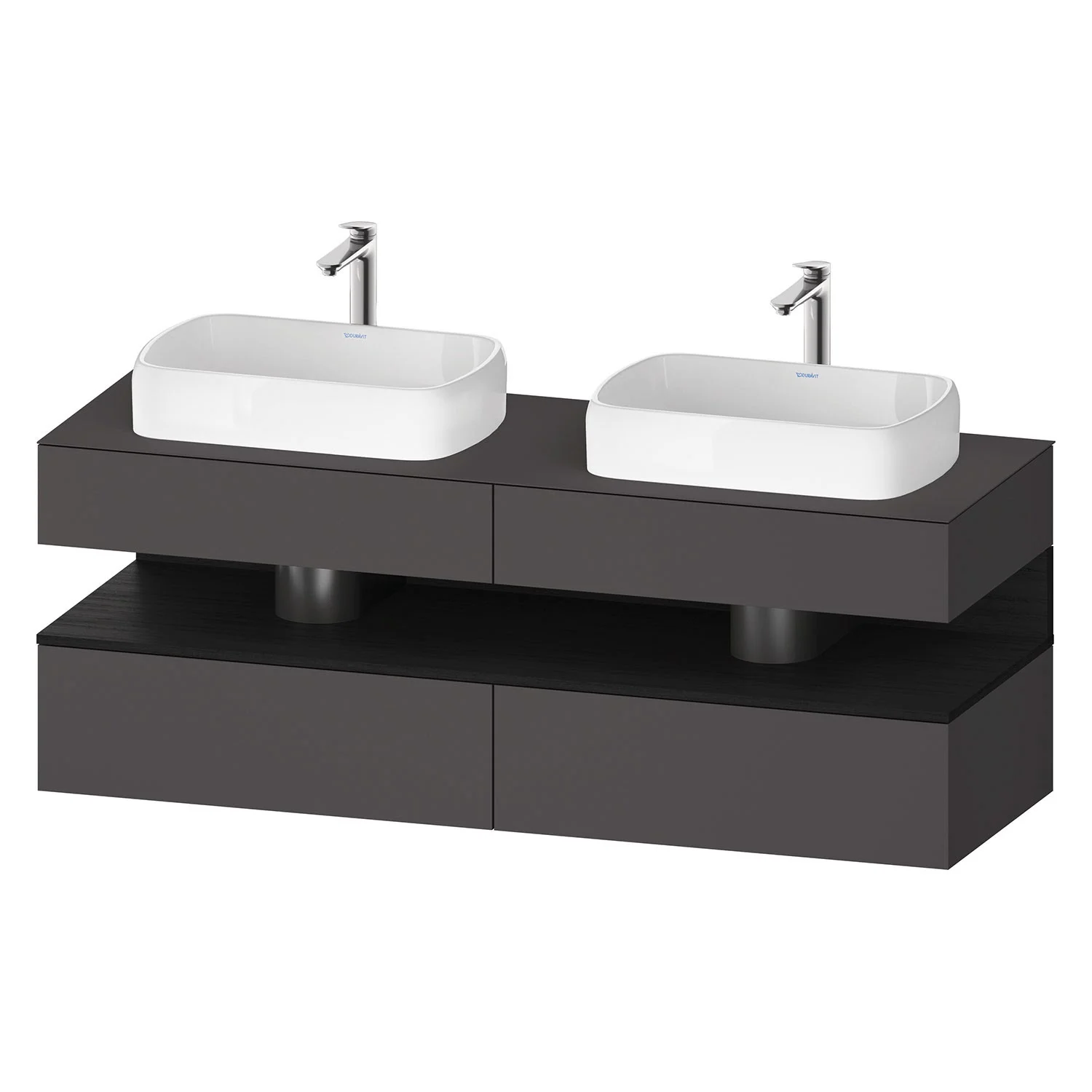 Duravit Qatego Konsolenwaschtischunterbau mit zwei Ausschnitten 160 x 60 cm, 4 Auszüge, mit LED Beleuchtung