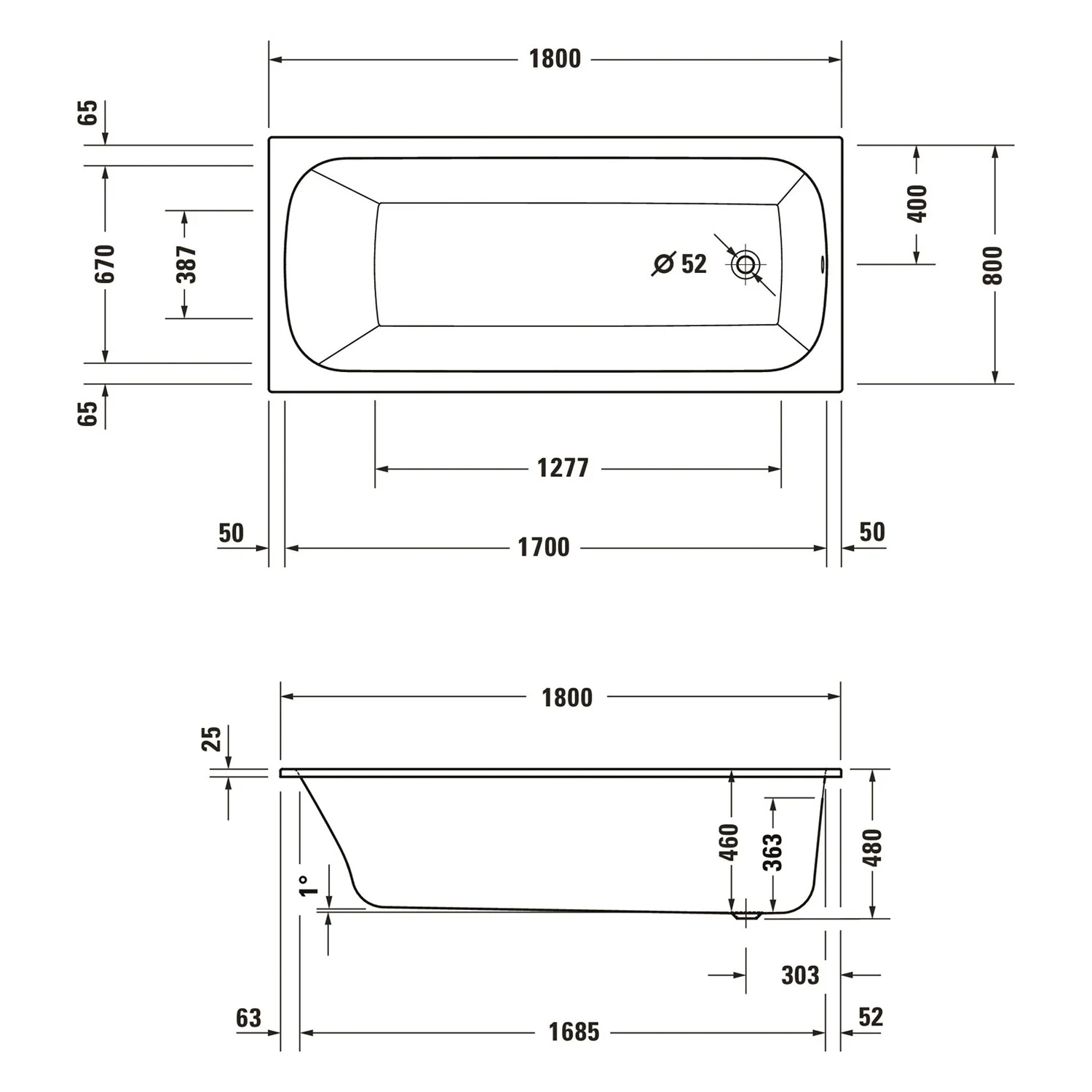 - Ablaufposition am Fußende mit Ø 5,2 cm