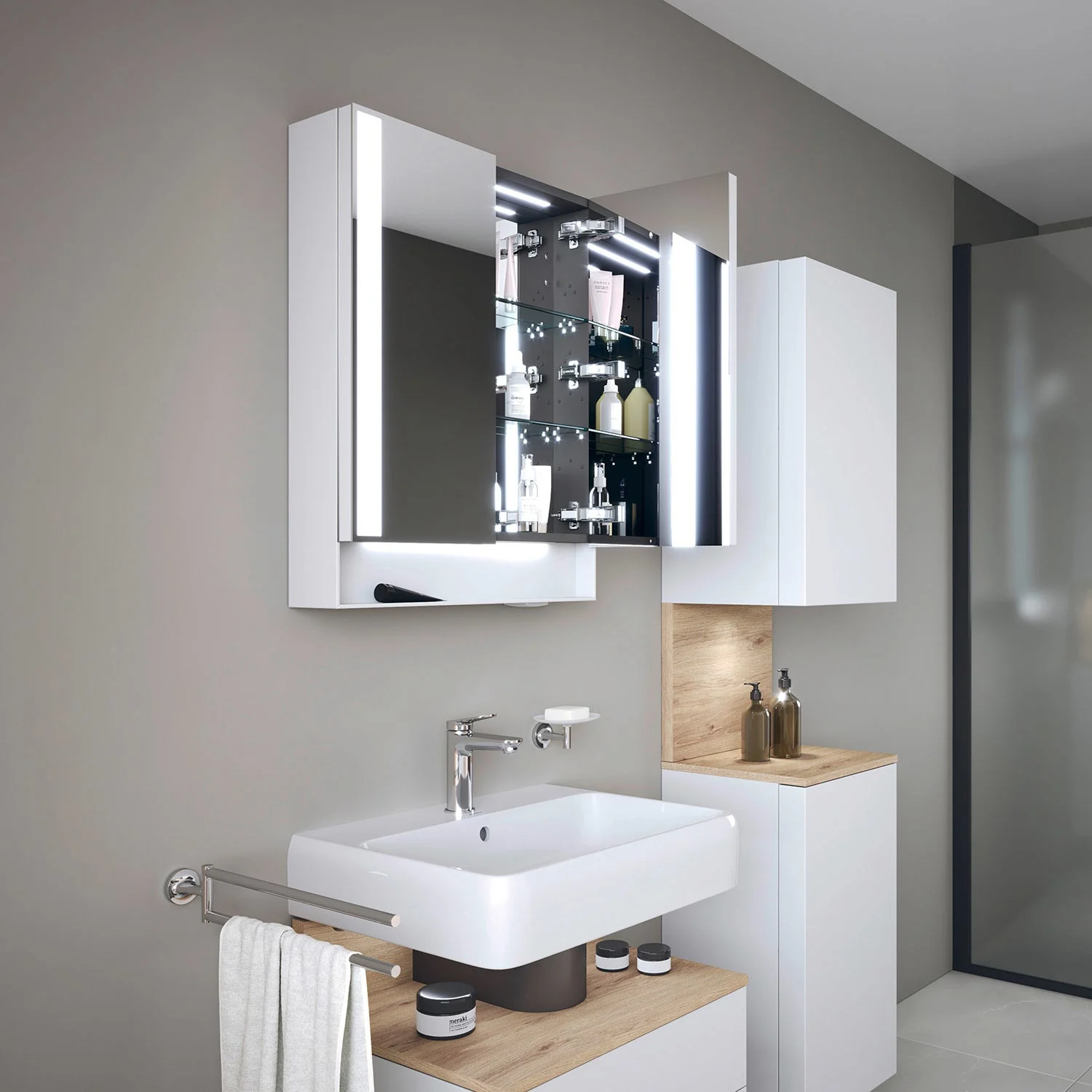 - eine integrierte Innenbeleuchtung sorgt für zusätzlichen Überblick im Spiegelschrank