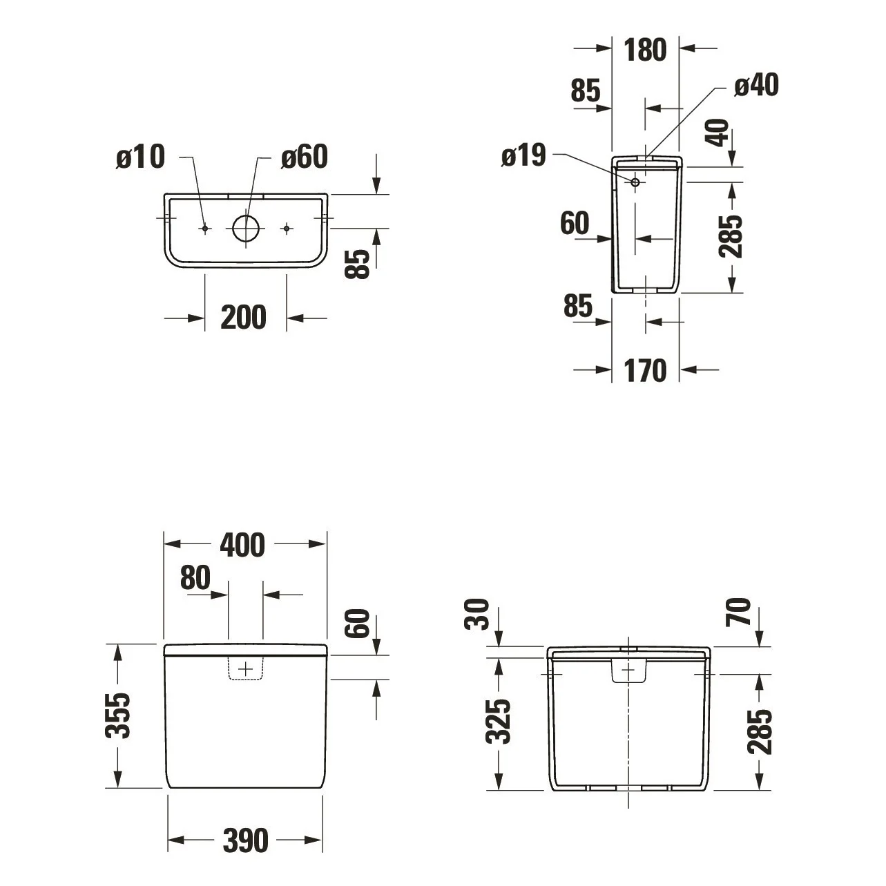 Duravit Qatego Spülkasten für Anschluß links oder rechts, für 4,5/3 l Spülung