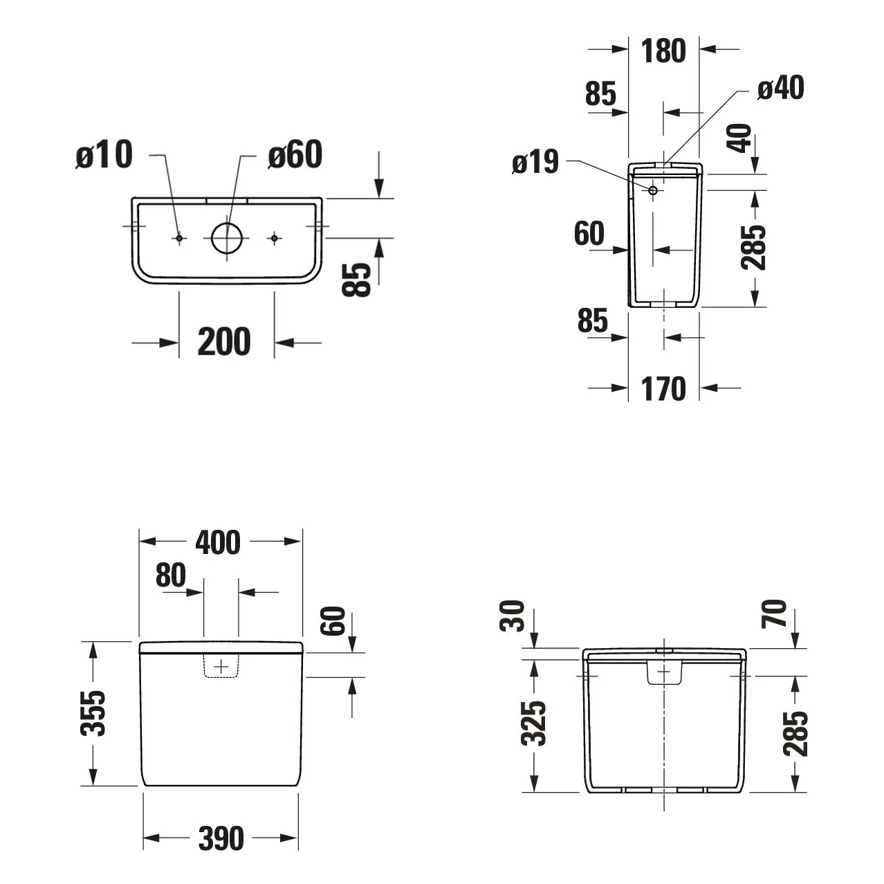 Duravit Qatego Spülkasten mit HygieneGlace für Anschluß links oder rechts, für 6/3 l Spülung
