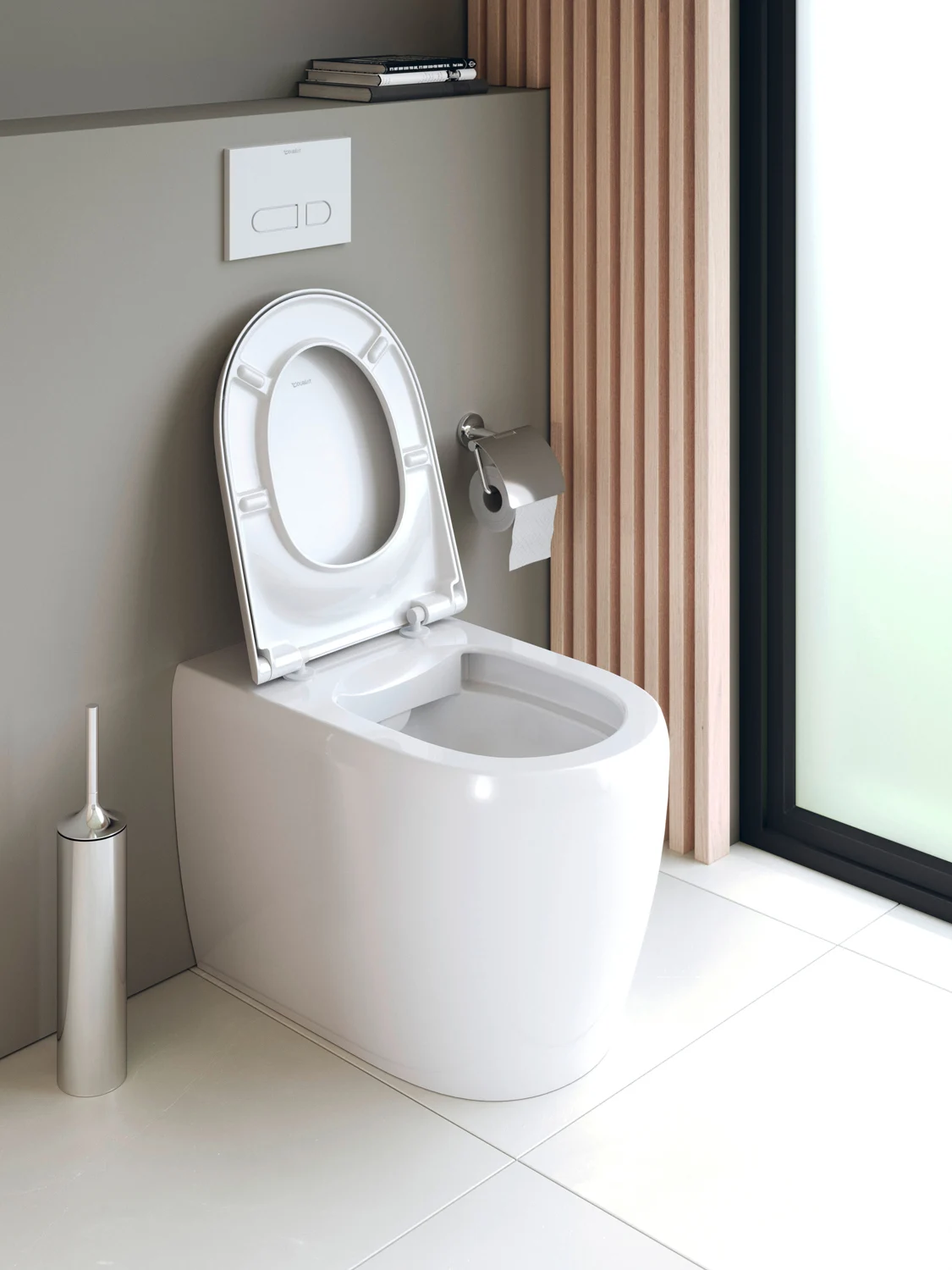 - offener Spülrand Duravit Rimless® mit dynamischer Wasserführung: hygienisch einwandfreie Spülergebnisse auch bei kleinen Wassermengen