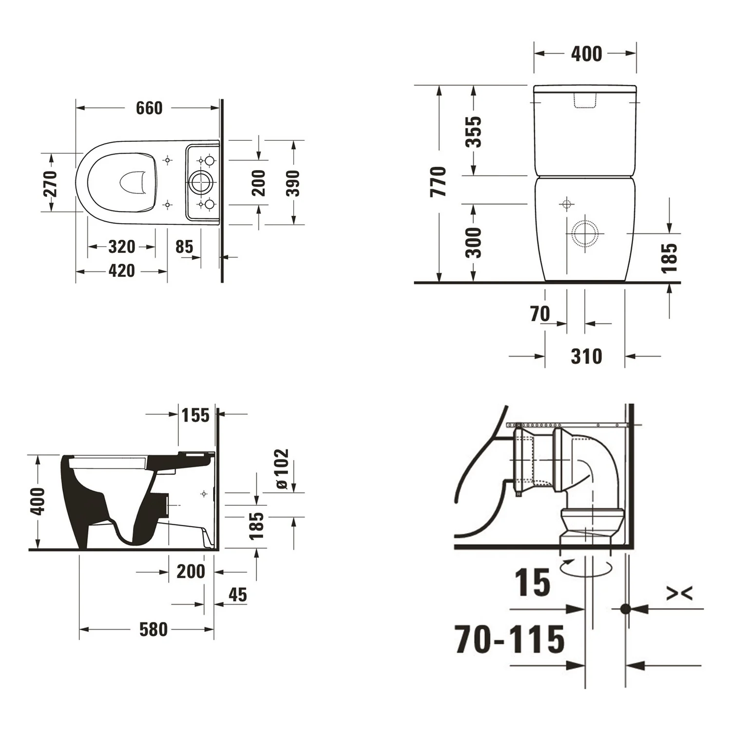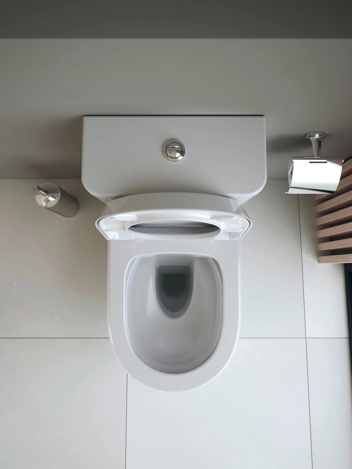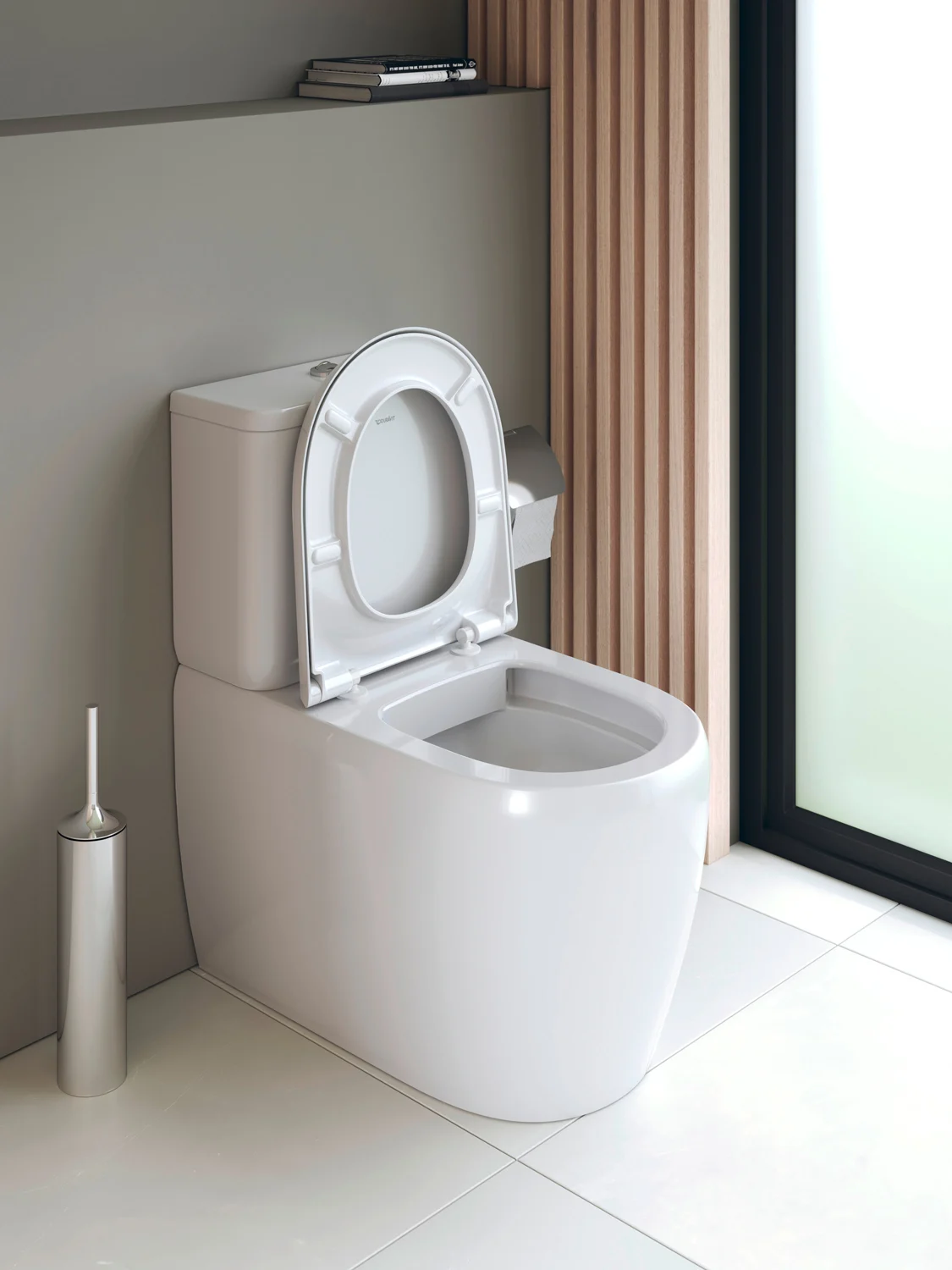 - offener Spülrand Duravit Rimless® mit dynamischer Wasserführung: hygienisch einwandfreie Spülergebnisse auch bei kleinen Wassermengen