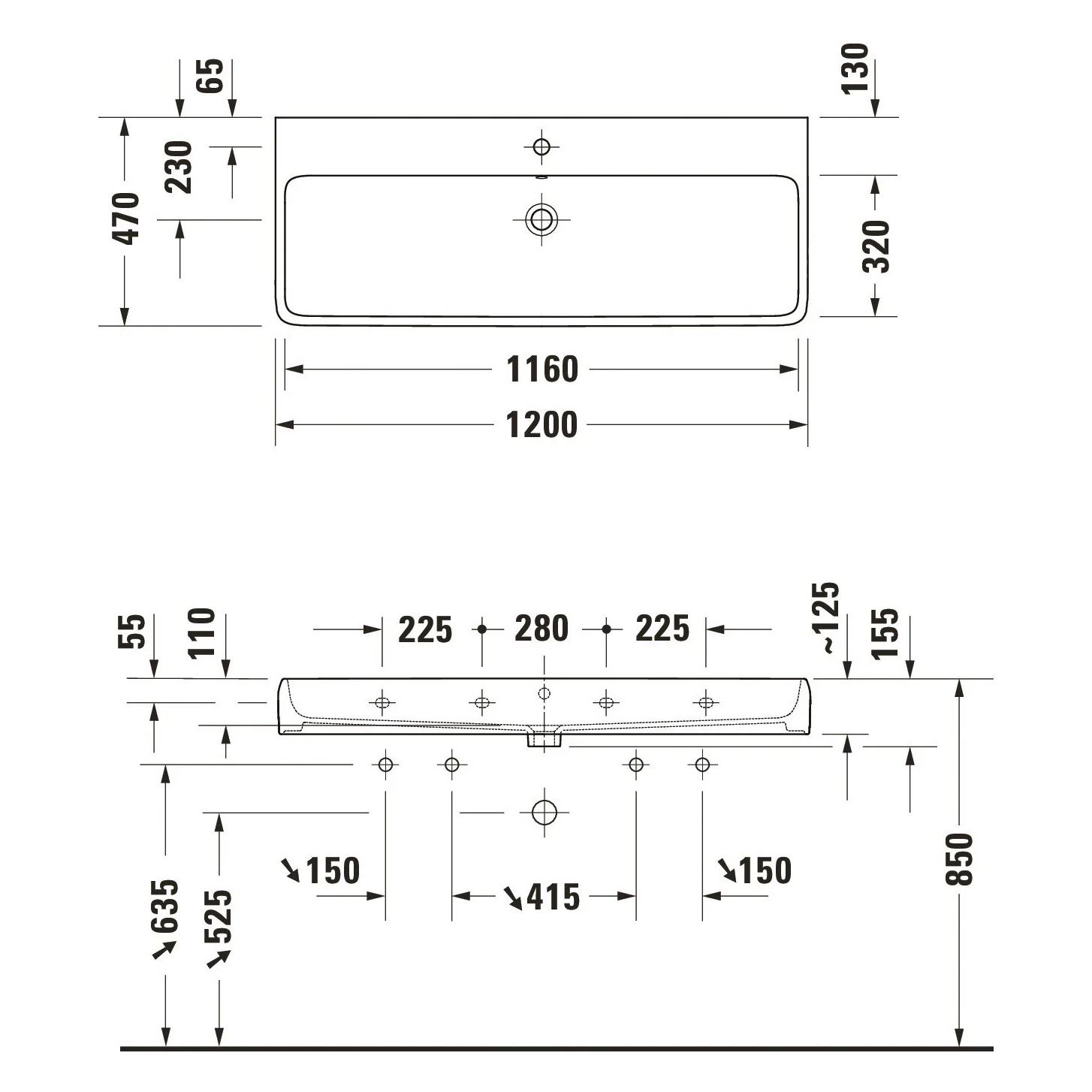 Duravit Qatego Waschtisch 120 x 47 cm, 2x 1 Hahnloch