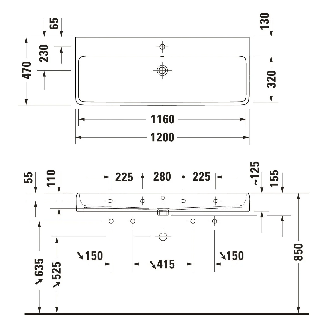 Duravit Qatego Waschtisch 120 x 47 cm, 2x 1 Hahnloch, mit HygieneGlace