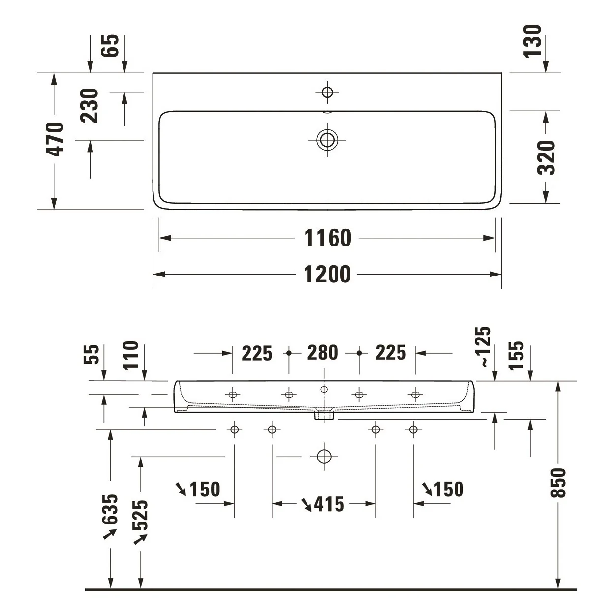 Duravit Qatego Waschtisch 120 x 47 cm geschliffen, 1 Hahnloch, mit HygieneGlace