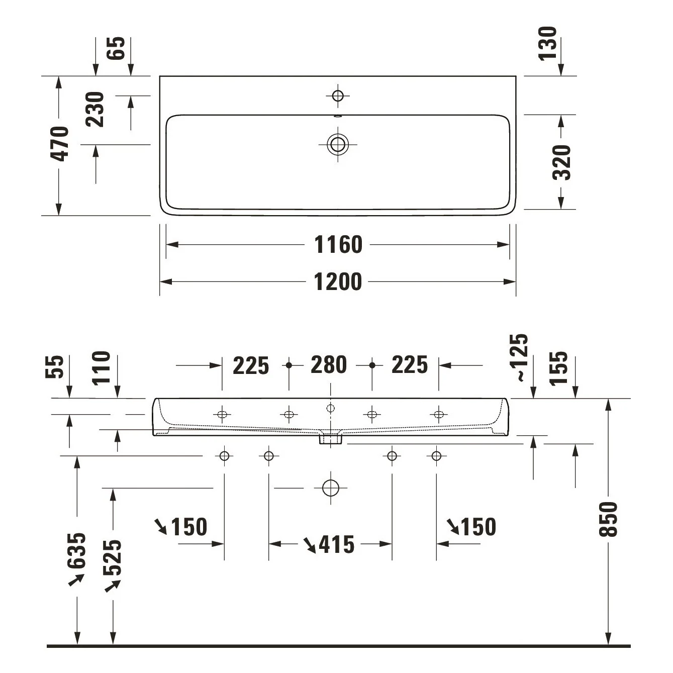 Duravit Qatego Waschtisch 120 x 47 cm geschliffen, ohne Hahnloch