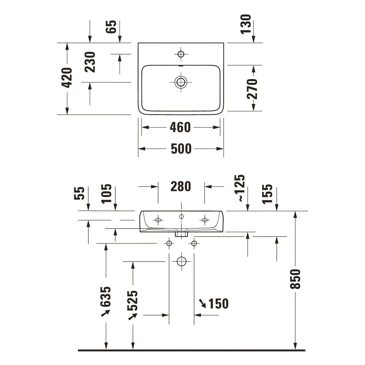 Duravit Qatego Waschtisch 50 x 42 cm, 1 Hahnloch, mit HygieneGlace