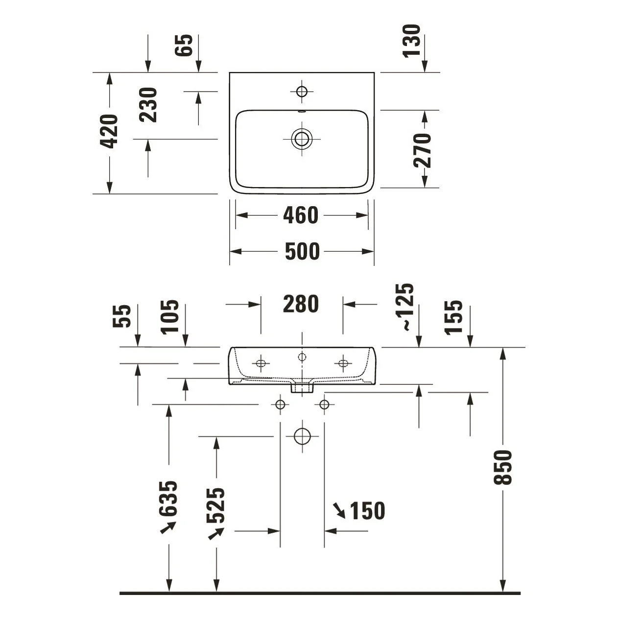 Duravit Qatego Waschtisch 50 x 42 cm geschliffen, 1 Hahnloch