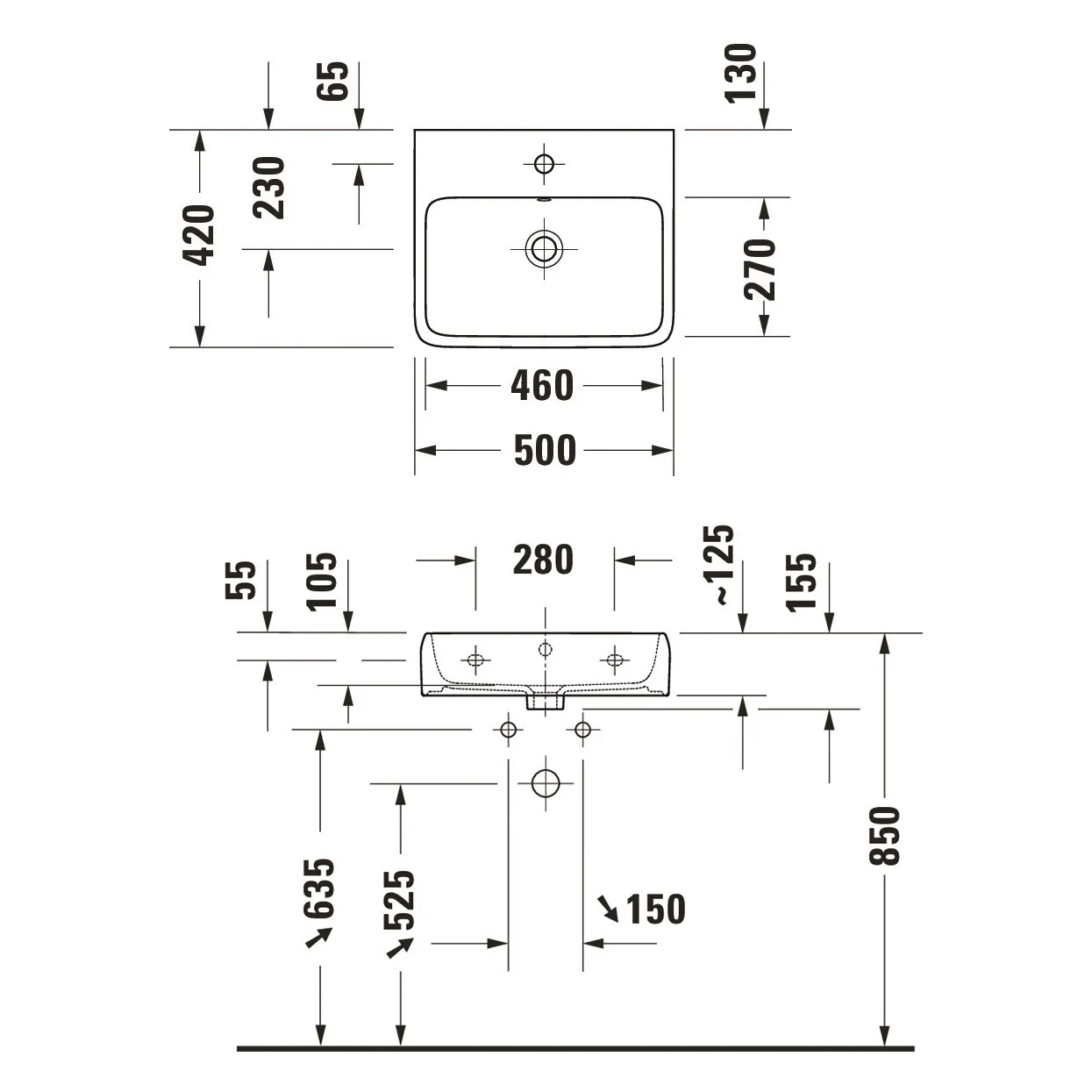 Duravit Qatego Waschtisch 50 x 42 cm geschliffen, 1 Hahnloch, mit HygieneGlace