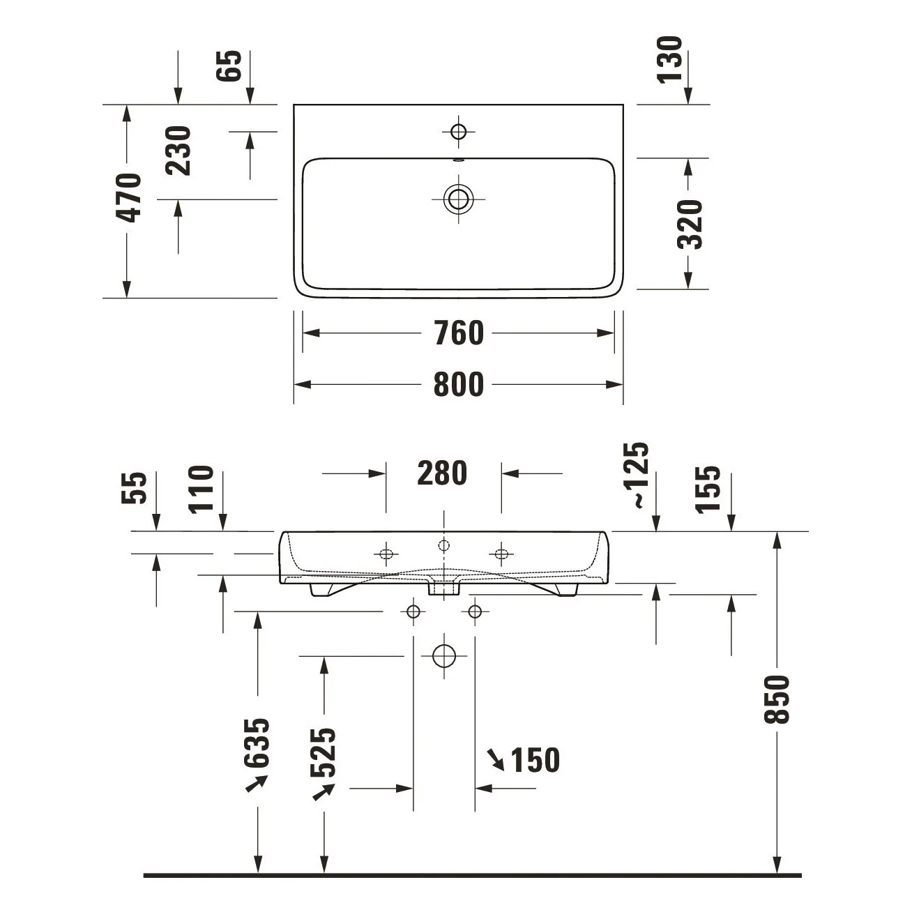 - Unterseite geschliffen, daher für die Montage auf Konsolen oder Waschtischunterschränken mit Konsole geeignet