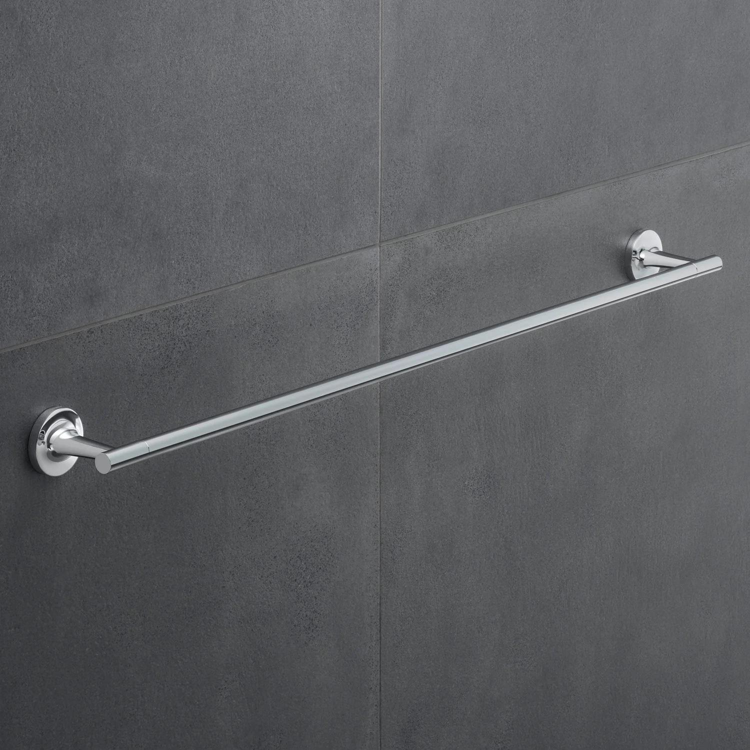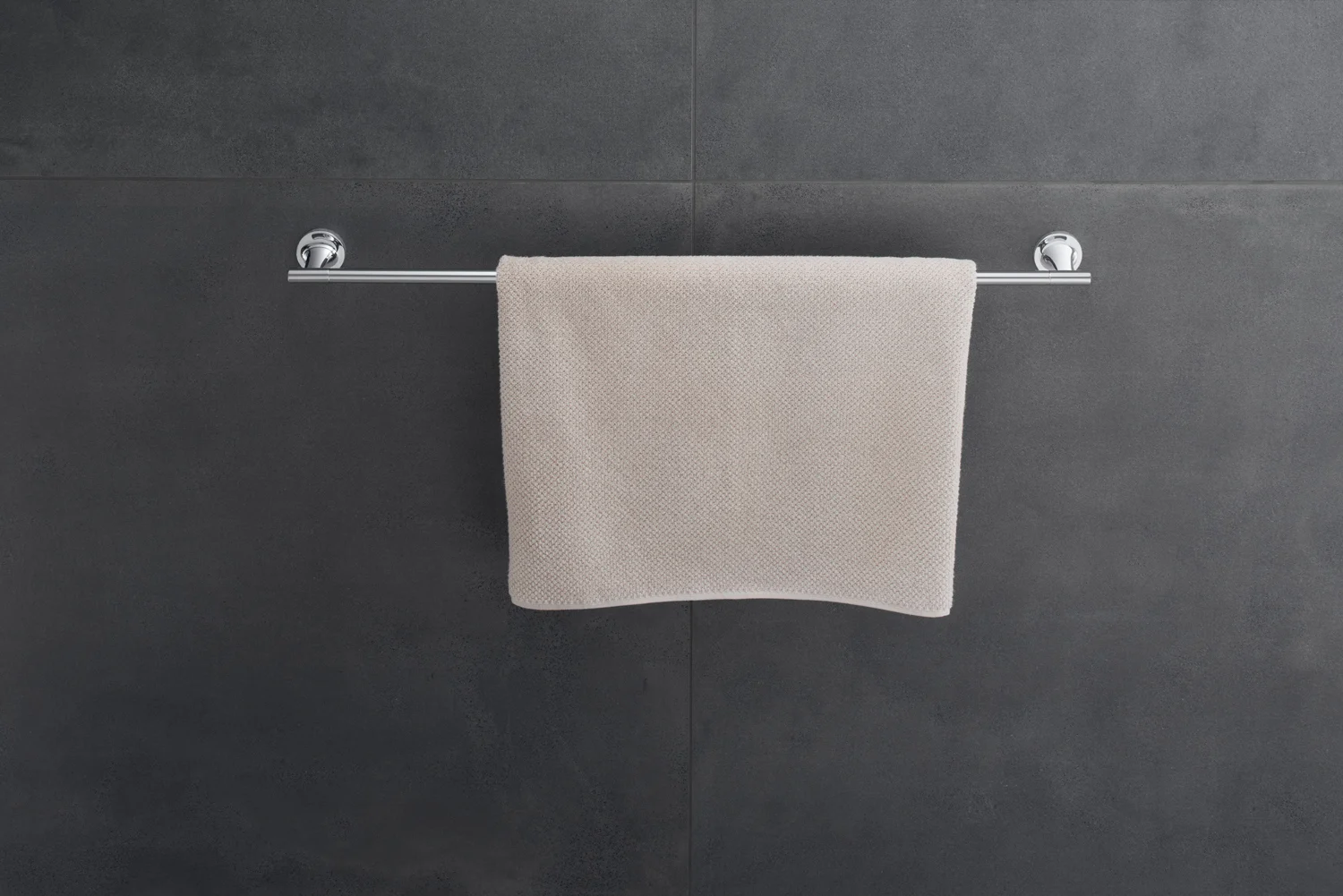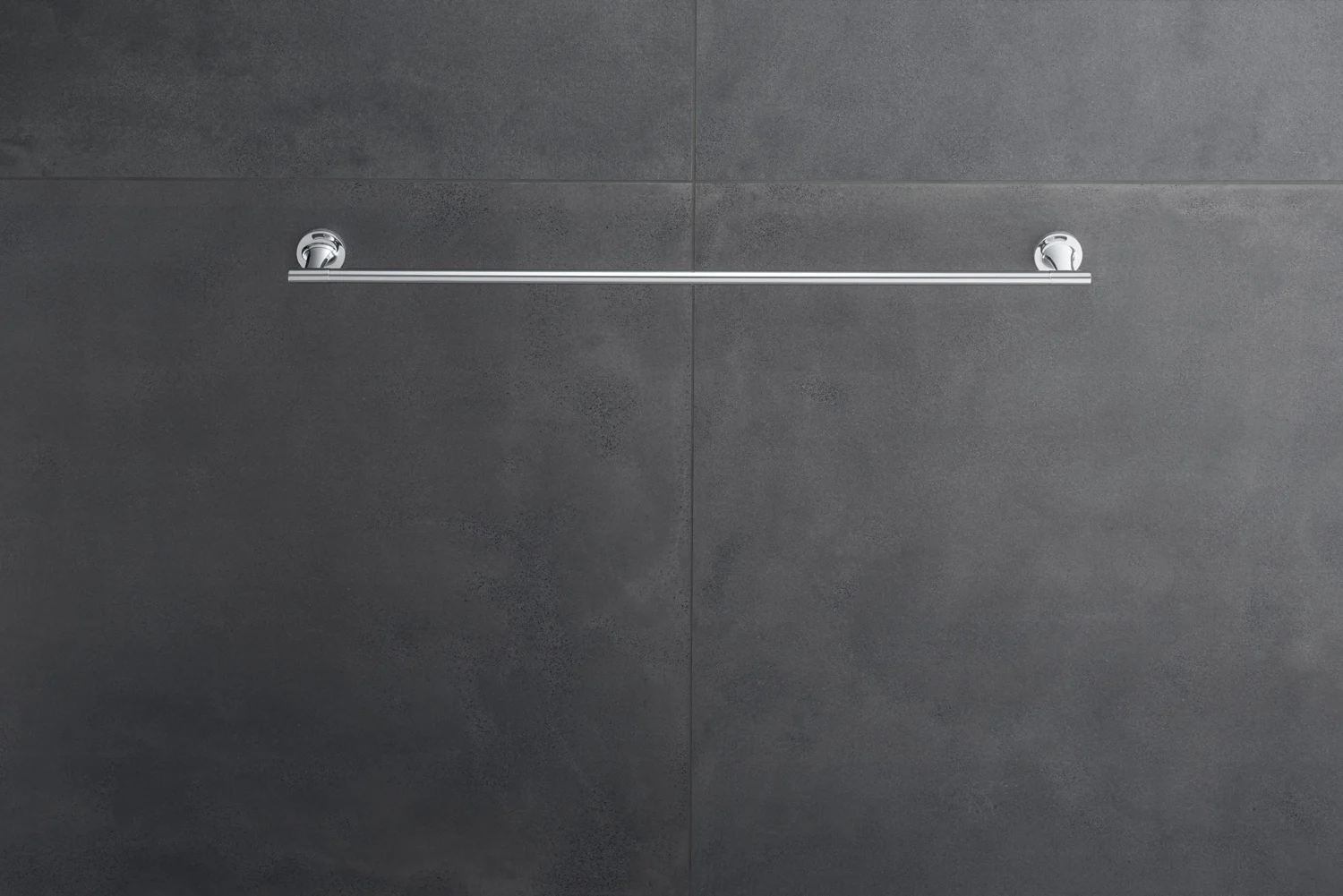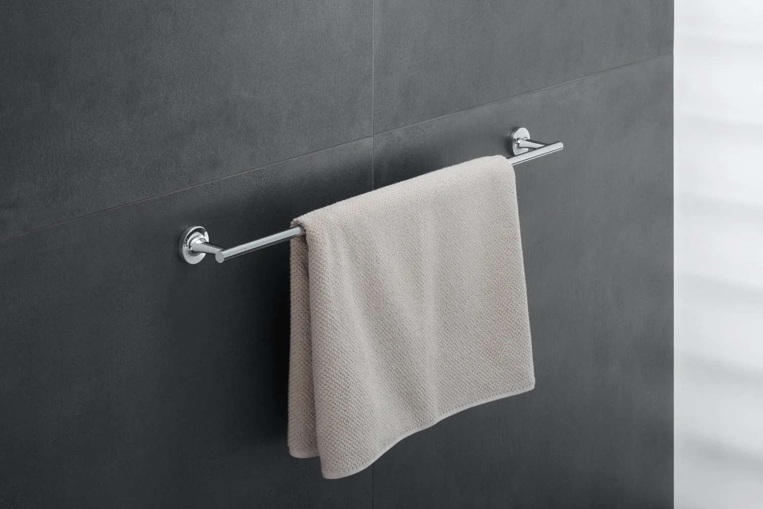 Nicht nur ein Detail: mit dem wandhängenden Duravit Starck T Badetuchhalter by Philippe Starck werden markante Blickpunkte im Bad gesetzt. Die serientypische Formensprache mit der charakteristischen „T“-Form findet sich auch im stilvollen Badetuchhalter wieder, dessen geometrisch-gerade Strebe sich aus zwei runden, weich geformten Wandhalterungen erhebt und Hand- sowie Badetüchern jeden Formats bequem Platz bietet. Im Einklang mit den charakteristischen Gestaltungsmerkmalen der gesamten Serie ruft sein Design Assoziationen an die Verästelung eines Baums hervor. Die hochwertige Ausstattung überzeugt nicht nur durch bewährte, langlebige Qualität, sondern ist auch ein optisches Highlight Der Badetuchhalter wird wahlweise an die Wand geschraubt oder geklebt – dank des verdeckten Befestigungssystems wird die elegante Optik dabei durch nichts gestört. In Kombination mit weiteren Starck T Badaccessoires ergibt sich ein harmonisches und stilvolles Gesamtbild im Bad.