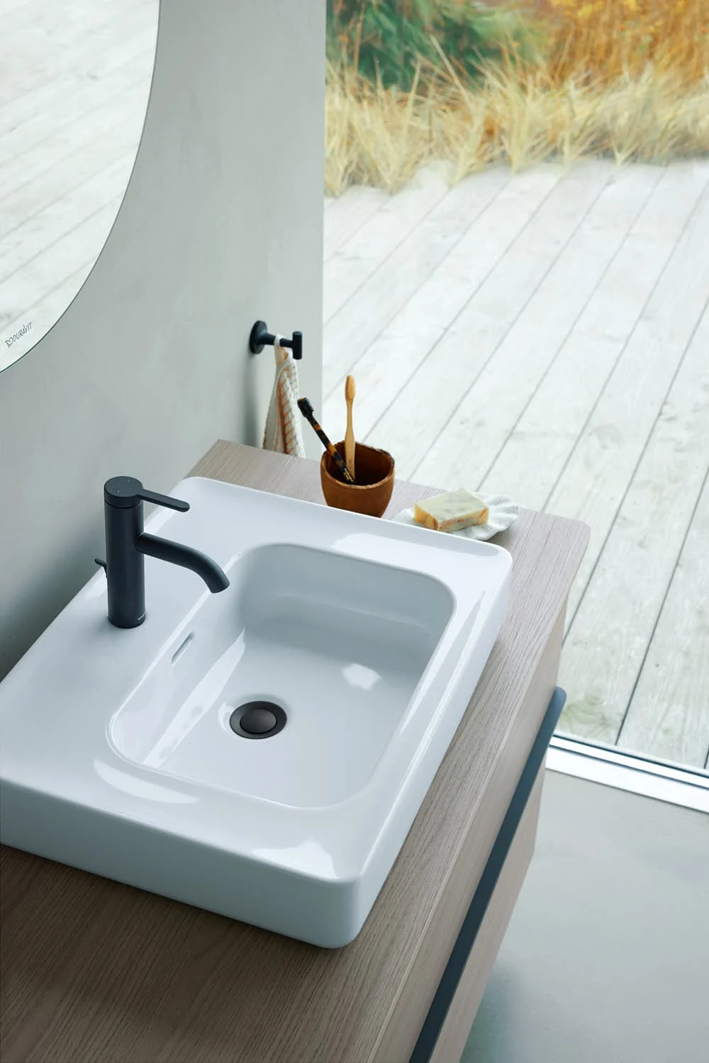 Organische Formensprache trifft funktionales Design: in dem Duravit Starck T Handtuchhaken aus der Accessoire-Serie des Star-Designers Philippe Starck vereinen sich Form und Funktion auf perfekte Weise. Aus der runden Basis erhebt sich ein wohlproportionierter, weich geformter Haken, dessen Form ein stilisiertes „T“ bildet und an die Verästelung eines Baums erinnert. Seine hochwertige Ausführung ist ein echter Hingucker, wodurch der Handtuchhalter ebenso elegant wie charakteristisch wirkt. Seine komfortable Größe bietet Hand- und Badetüchern jeden Formats bequem Platz und die charakteristische T-Form sorgt dafür, dass das Handtuch nicht vom Haken rutschen kann. Das verdeckte Befestigungssystem unterstreicht die elegante Optik und bietet gleichzeitig maximale Flexibilität bei der Montage, da der Handtuchhaken sowohl an die Wand geschraubt als auch geklebt werden kann. In Kombination mit weiteren Starck T Badaccessoires ergibt sich ein harmonisches und stilvolles Gesamtbild.