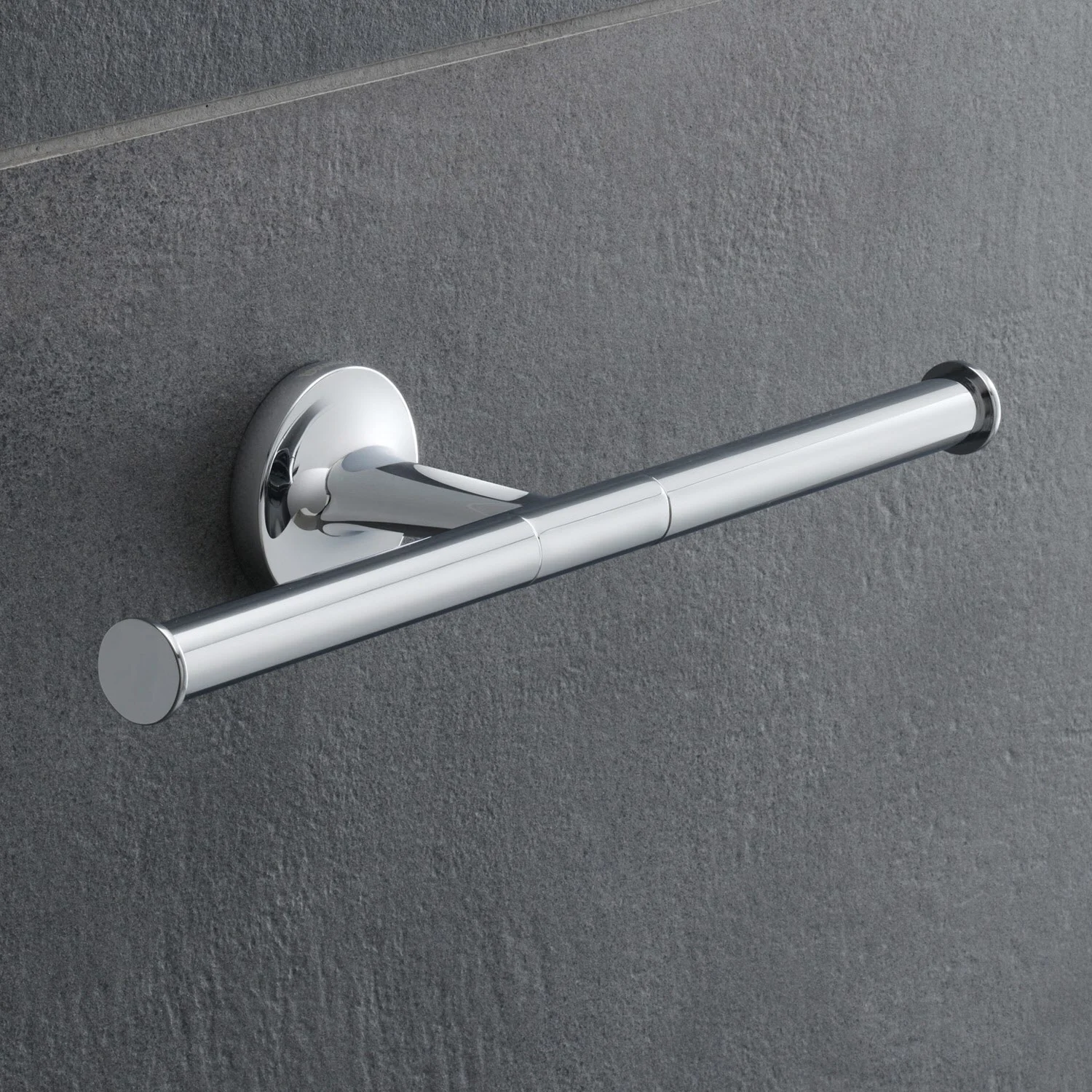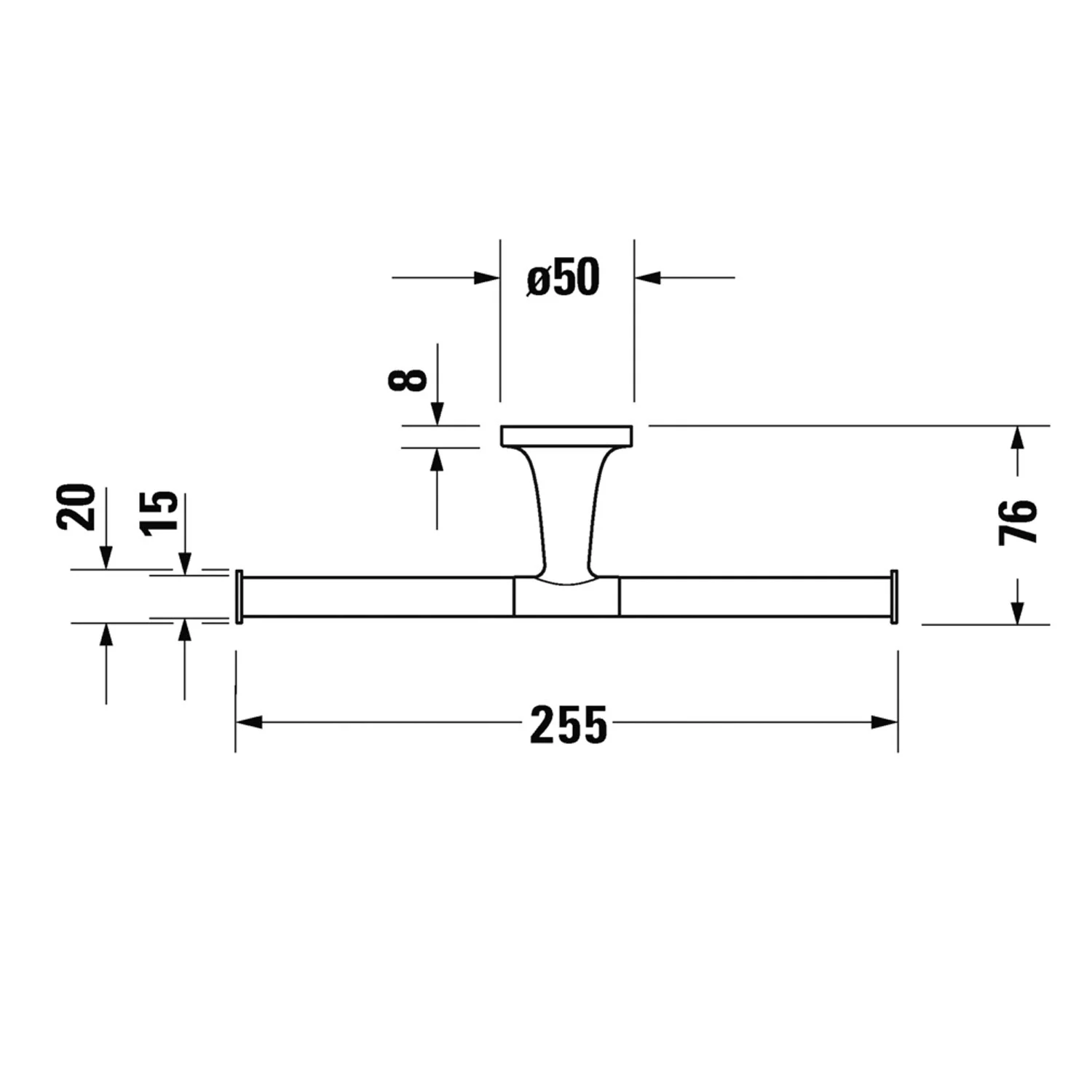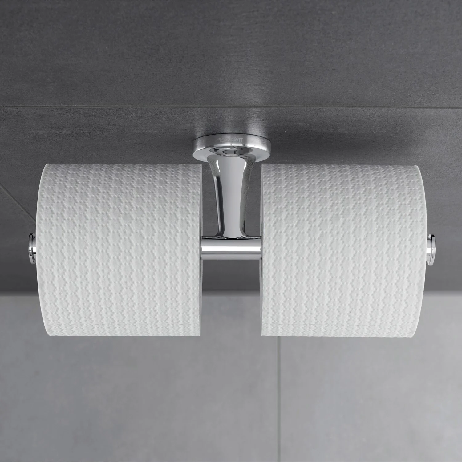 Form und Funktion vereinen sich zu einem ikonischen Accessoire: dem wandhängenden Duravit Starck T Papierrollenhalter. Philippe Starcks Designidee einer T-förmigen Verästelung mit organischem Charakter, die aus einer runden, weich geformten Basis erwächst, zeigt sich gelungen in der formschönen Symmetrie des Papierrollenhalters, welcher gleich zwei Papierrollen griffbereit hält. Dank des verdeckten Befestigungssystems wird die wohlproportionierte Formgebung durch nichts beeinträchtigt. Zusätzlich bietet es Flexibilität bei der Montage, da der Papierrollenhalter sowohl an die Wand geschraubt als auch geklebt werden kann. Ein Design-Accessoire fürs Bad, dessen hochwertige Verarbeitung in verschiedenen Oberflächen alle Blicke auf sich zieht und perfekt mit den weiteren Accessoires aus der Starck T Designlinie harmoniert.
