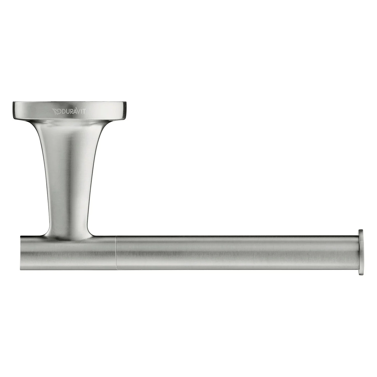Form und Funktion vereinen sich zu einem ikonischen Accessoire: dem wandhängenden Duravit Starck T Papierrollenhalter. Philippe Starcks Designidee einer T-förmigen Verästelung mit organischem Charakter, die aus einer runden, weich geformten Basis erwächst, zeigt sich gelungen in der formschönen Symmetrie des Papierrollenhalters. Dank des verdeckten Befestigungssystems wird die wohlproportionierte Formgebung durch nichts beeinträchtigt. Zusätzlich bietet es Flexibilität bei der Montage, da der Papierrollenhalter sowohl an die Wand geschraubt als auch geklebt werden kann. Ein Design-Accessoire fürs Bad, dessen hochwertige Verarbeitung in verschiedenen Oberflächen alle Blicke auf sich zieht und perfekt mit den weiteren Accessoires aus der Starck T Designlinie harmoniert.