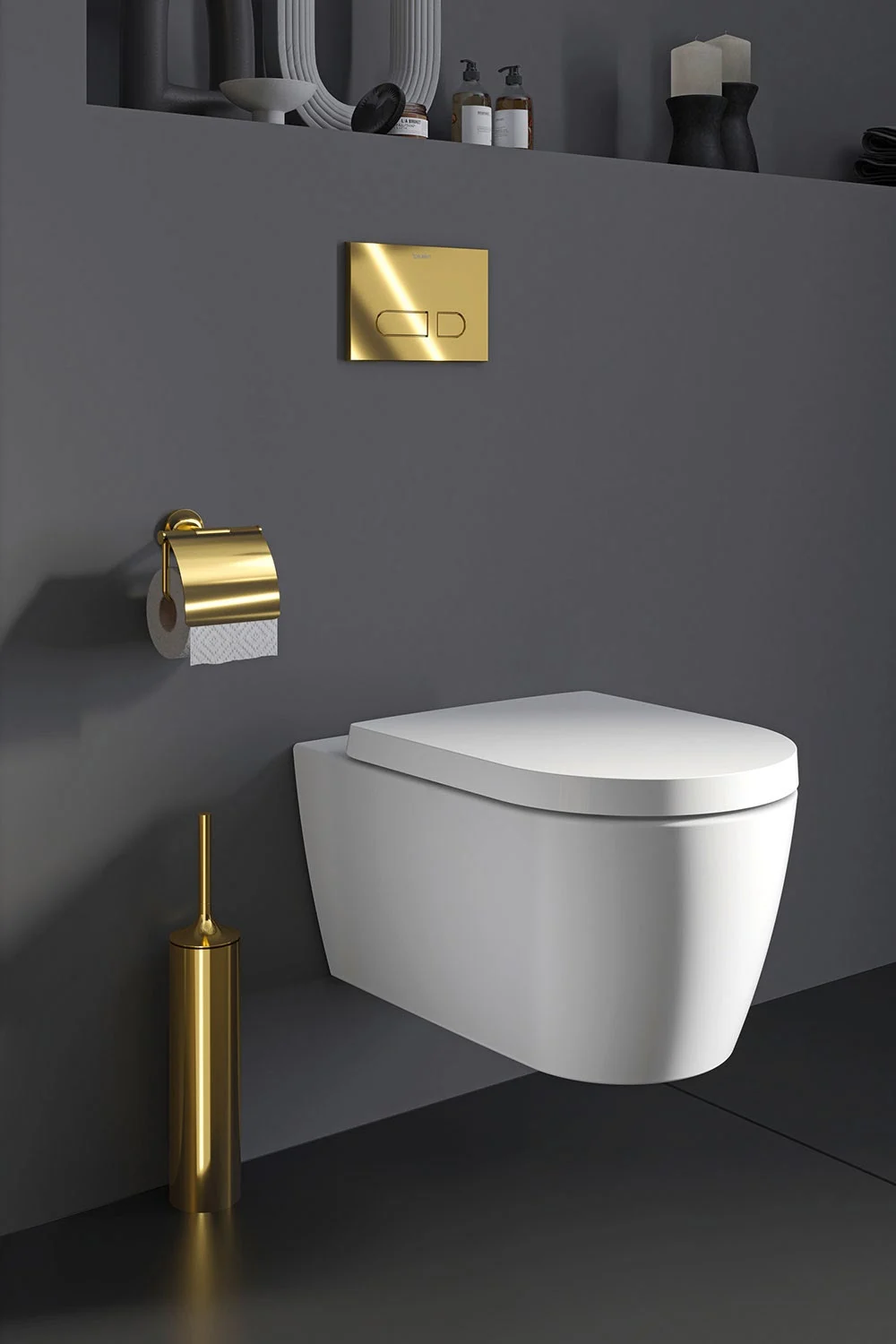 Schlichte Funktionalität und puristische Formgebung vereinen sich zu einem edlen Bad-Accessoire – dem wandhängenden Duravit Starck T Papierrollenhalter mit Deckel. Formschönes Design by Philippe Starck charakterisiert auch dieses Element der Starck T Accessoirelinie. Aus der weich geformten, runden Wandhalterung erwächst eine T-förmige Querstrebe, die zugleich anmutig organisch wie auch stringent-funktional wirkt. Der puristische, leicht gebogene Metalldeckel bedeckt stilvoll die obere Hälfte der Rolle und gibt die untere Hälfte zur ungestörten Papierentnahme frei. Ein hochwertiges Design-Accessoire, dessen elegante Optik dank des verdeckten Befestigungssystems durch nichts beeinträchtigt wird. Zusätzlich bietet es Flexibilität bei der Montage, da der Papierrollenhalter sowohl an die Wand geschraubt als auch geklebt werden kann. Das WC-Accessoire harmoniert perfekt mit den weiteren Accessoires aus der Starck T Designlinie, für einen einheitlichen Look im gesamten Bad.