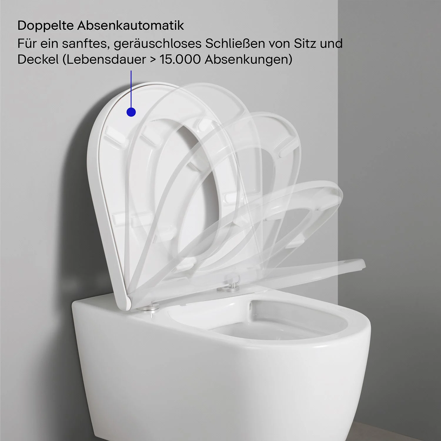 - mit Absenkautomatik für sanftes, geräuschloses Schließen von Sitz und Deckel