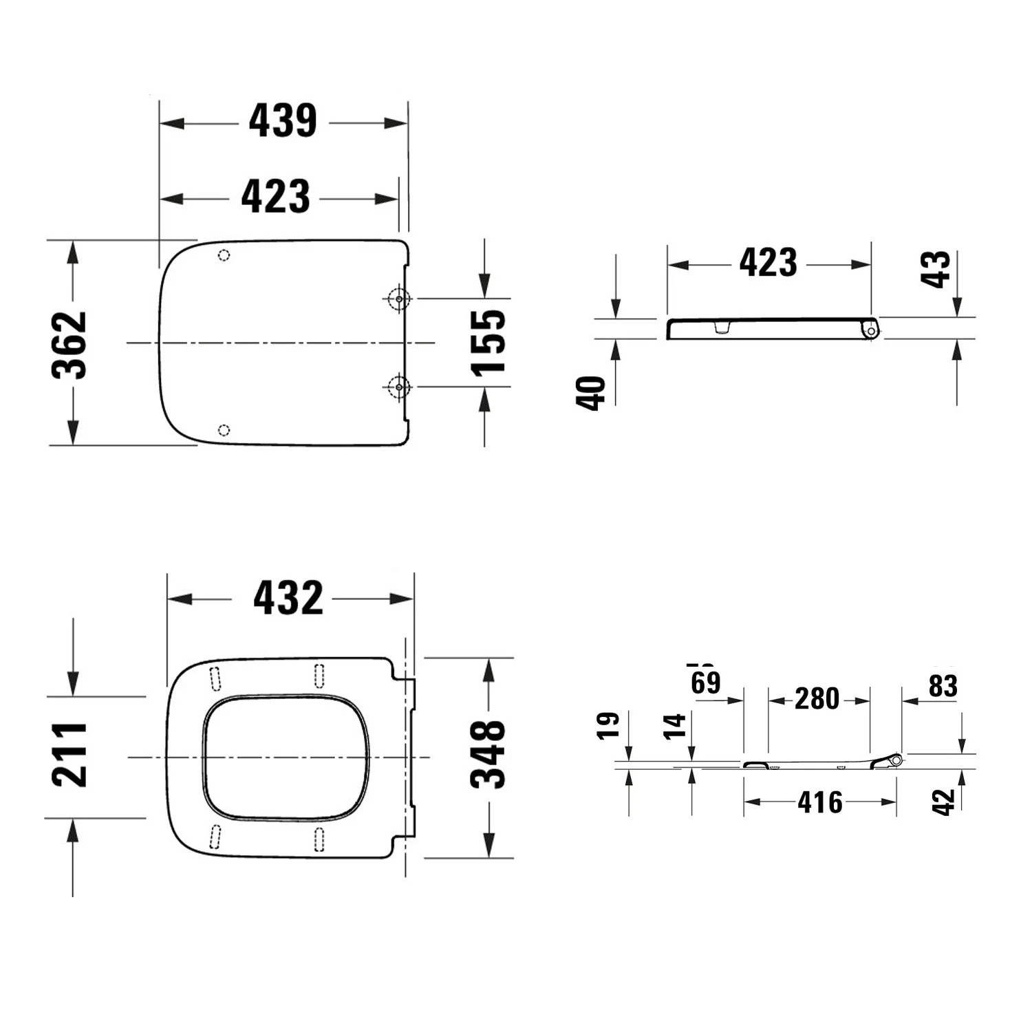Duravit Universal WC-Sitz eckig mit Absenkautomatik