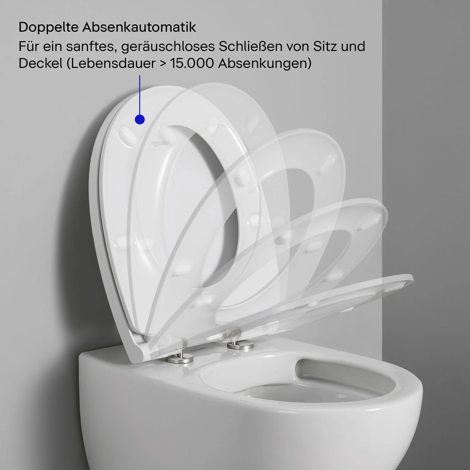 - mit Absenkautomatik für sanftes, geräuschloses Schließen von Sitz und Deckel
