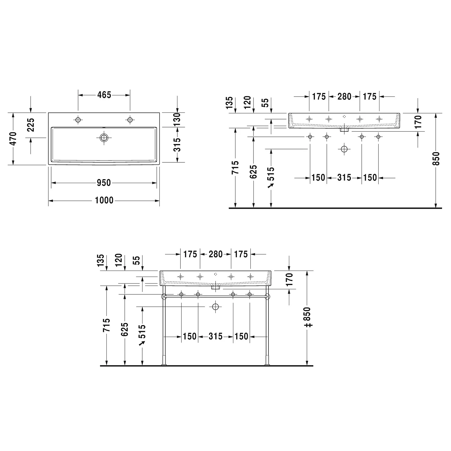 Duravit Vero Air Möbelwaschtisch mit 2 x 1 Hahnloch 100 x 47 cm, mit Überlauf