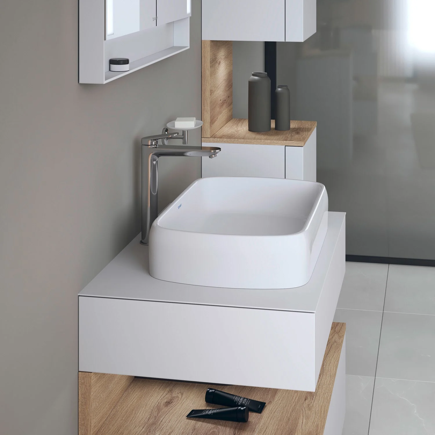 - dank der Höhe ideal geeignet für die Kombination mit Aufsatzbecken ohne Hahnlochbank