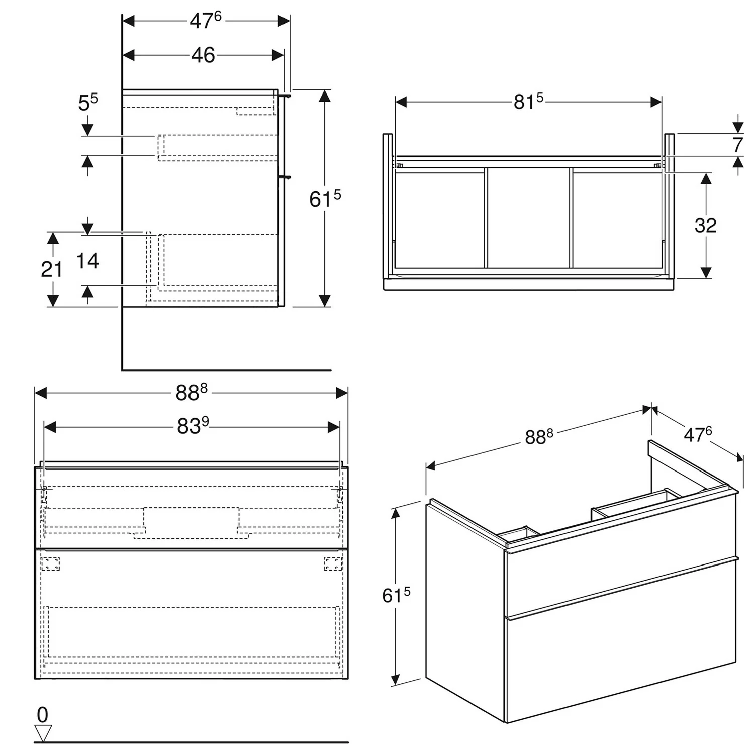 Geberit iCon Unterschrank für Waschtisch 90 cm, mit 2 Schubladen