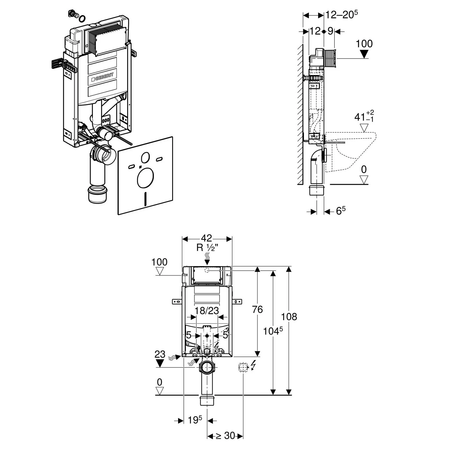 Geberit Kombifix Element für Wand-WC, 108 cm, mit Sigma UP-Spülkasten 12 cm, für Geruchsabsaugung, tiefenverstellbar, für Betätigung von vorne