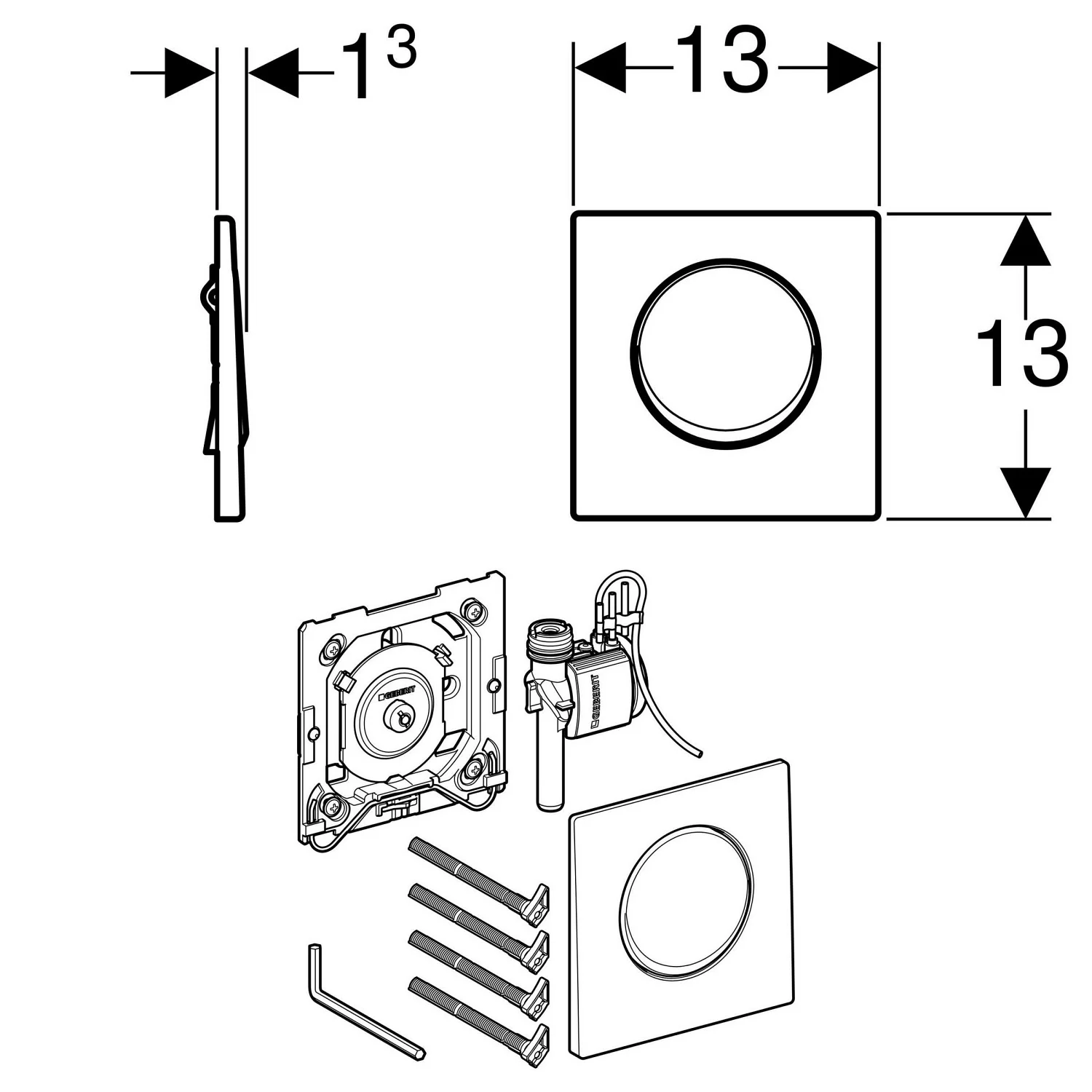 - zum Einbau in Geberit Urinal-Installationselemente mit Betätigung von vorne oder oben, ab Baujahr 2009