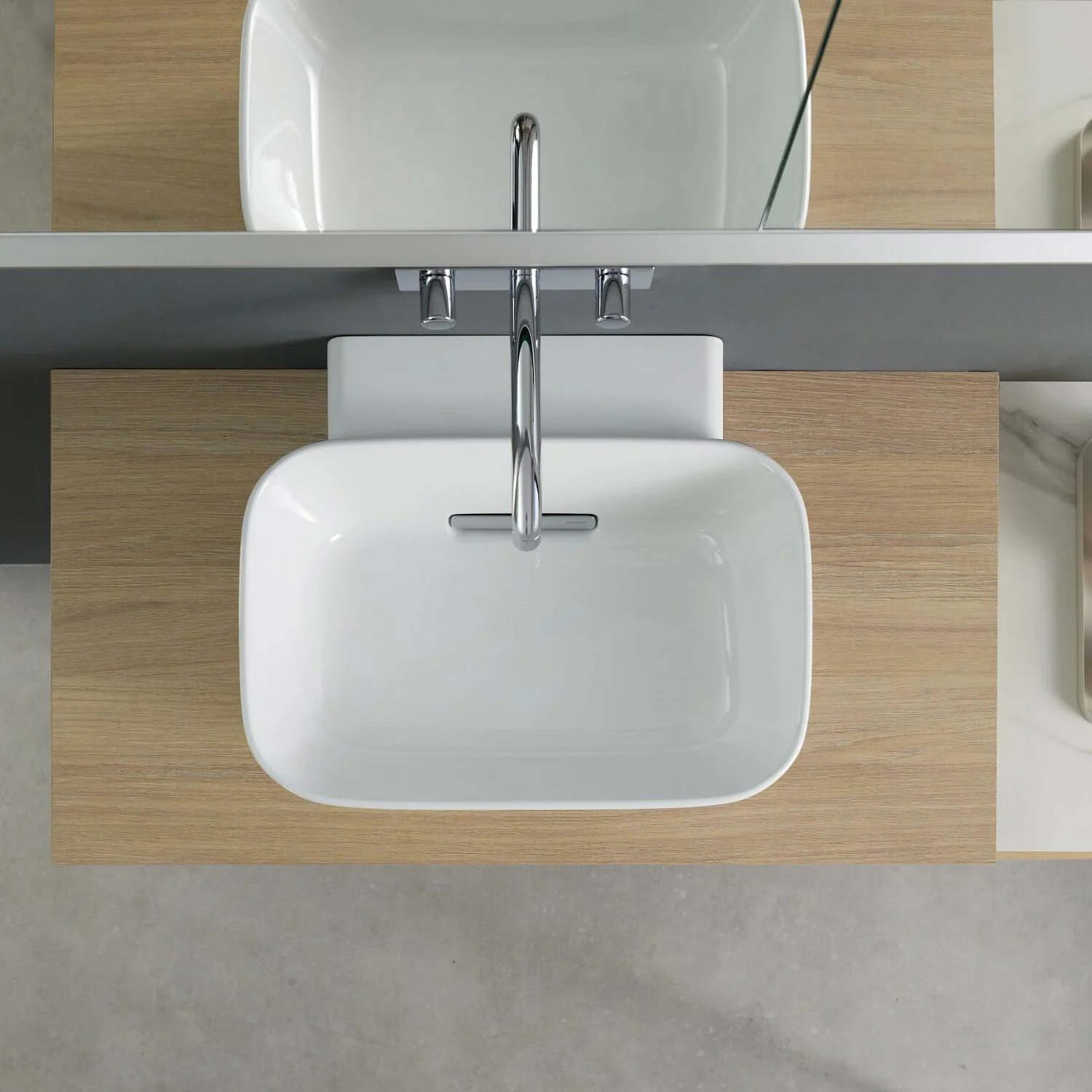 Geberit ONE Aufsatzwaschtisch Schalenform, ohne Hahnloch, ohne Überlauf, Abgang horizontal