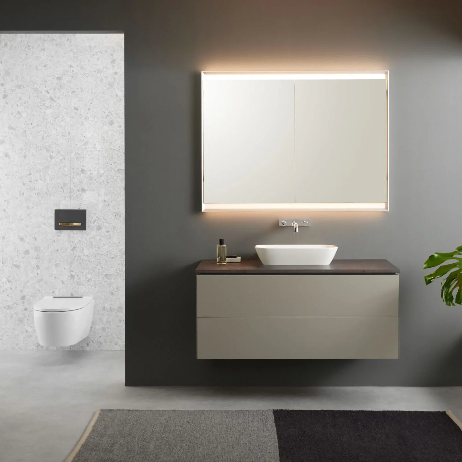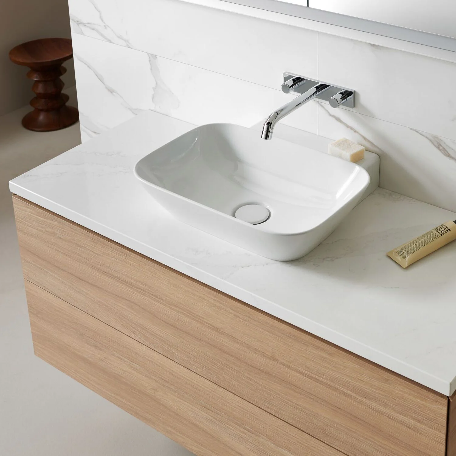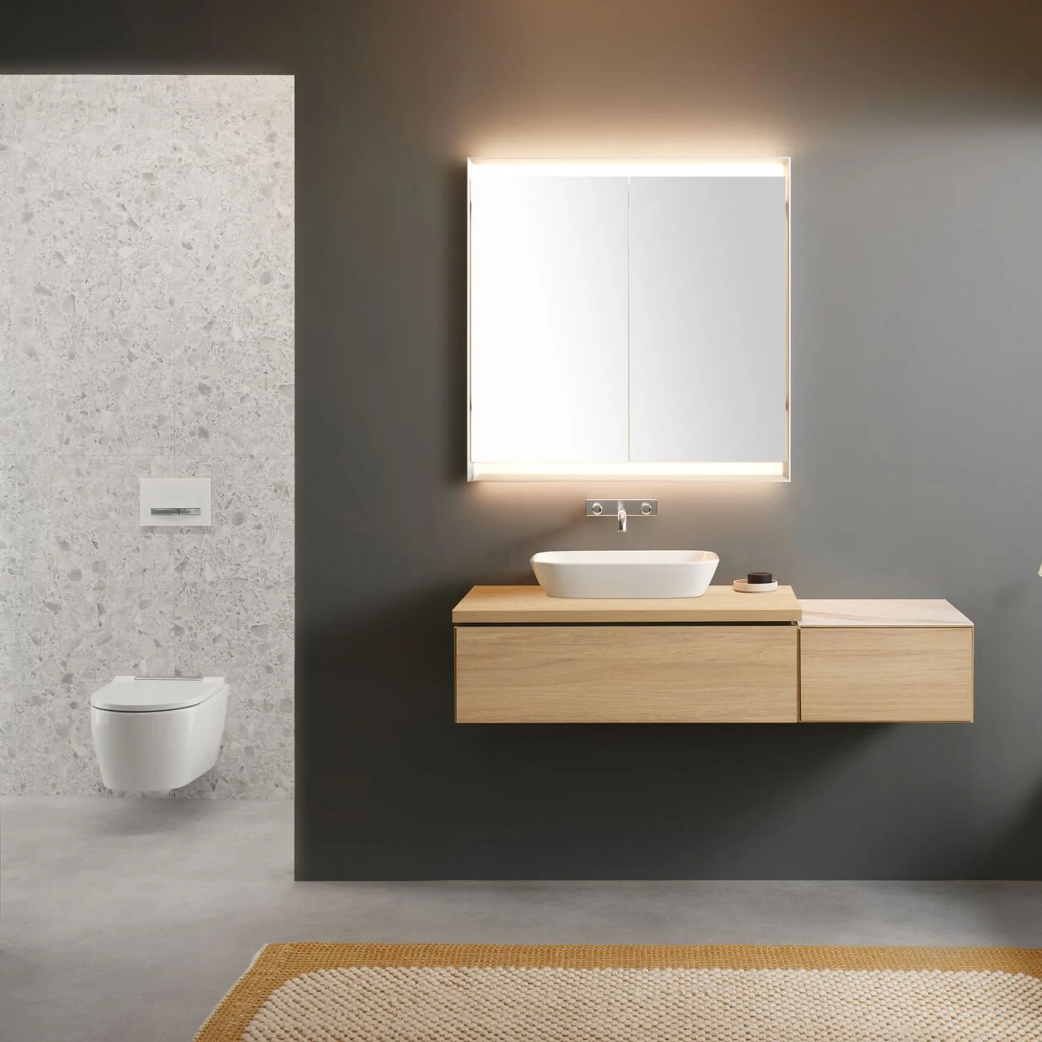 Geberit ONE Aufsatzwaschtisch Schalenform, ohne Hahnloch, ohne Überlauf, Abgang vertikal