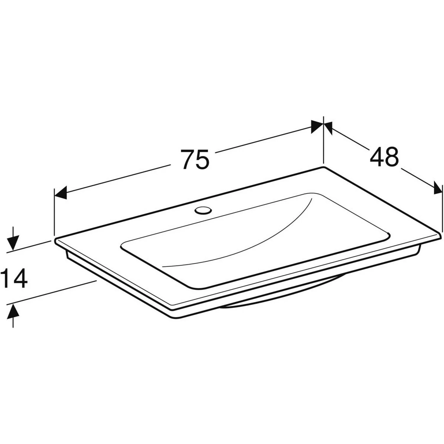 Geberit ONE Möbelwaschtisch 75 cm, Abgang vertikal, 1 Hahnloch, ohne Überlauf
