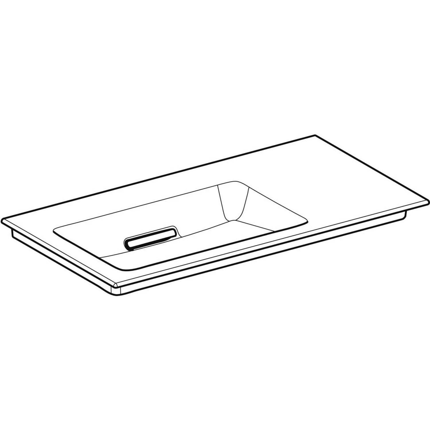 Geberit ONE Möbelwaschtisch 90 cm, Abgang horizontal, ohne Hahnloch, ohne Überlauf, Ablage rechts
