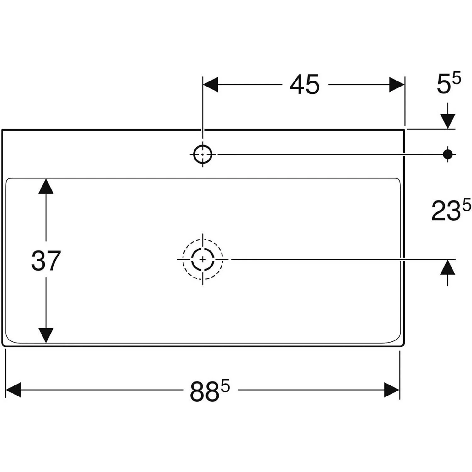 Geberit ONE Waschtisch 90 cm, Abgang vertikal, 1 Hahnloch, ohne Überlauf