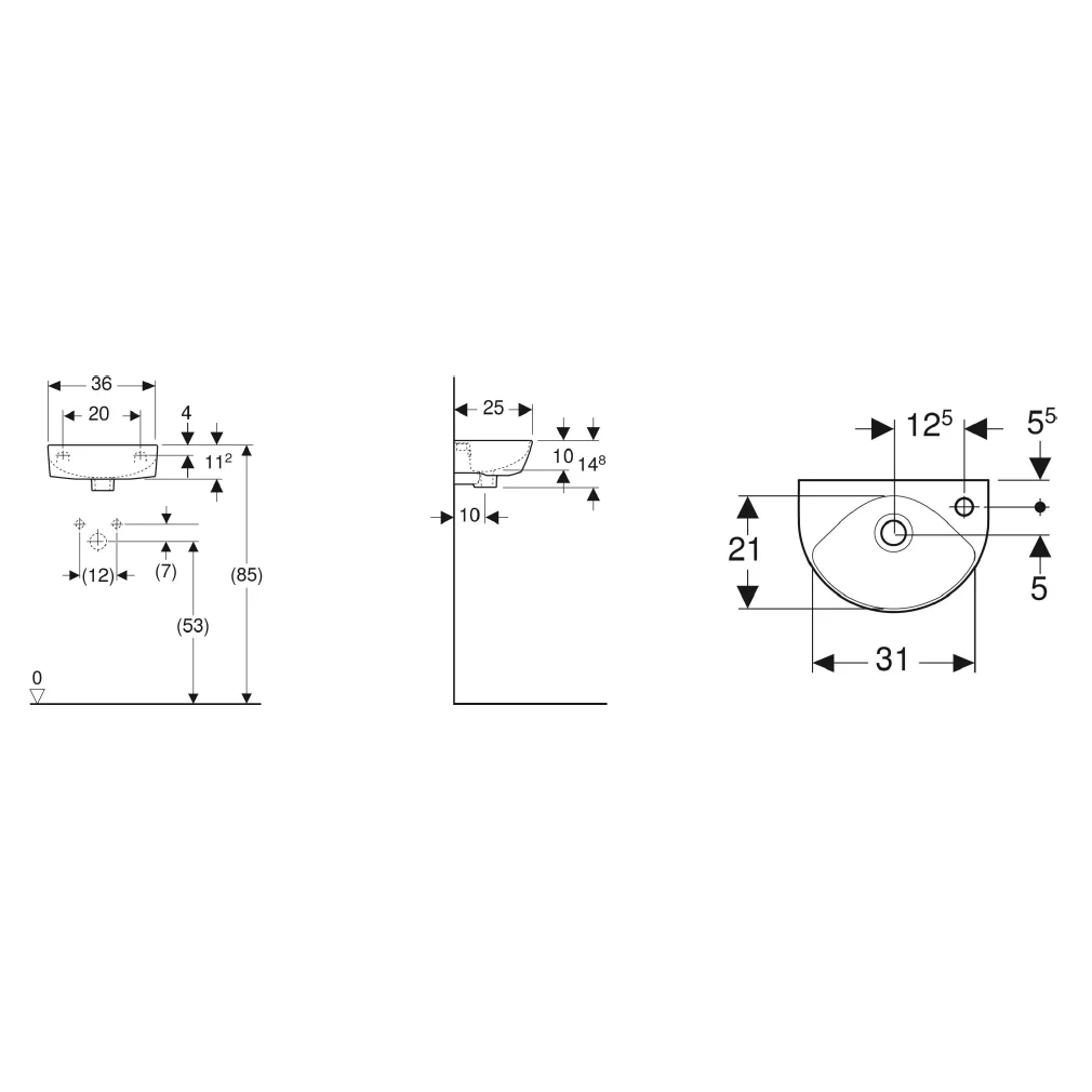 Geberit Renova Handwaschbecken 36 x 25 cm verkürzte Ausladung