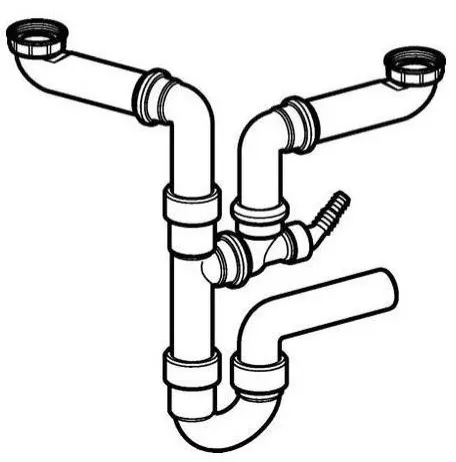 Geberit Spültisch-Ablauf DN 40 für zwei Becken, Raumsparmodell