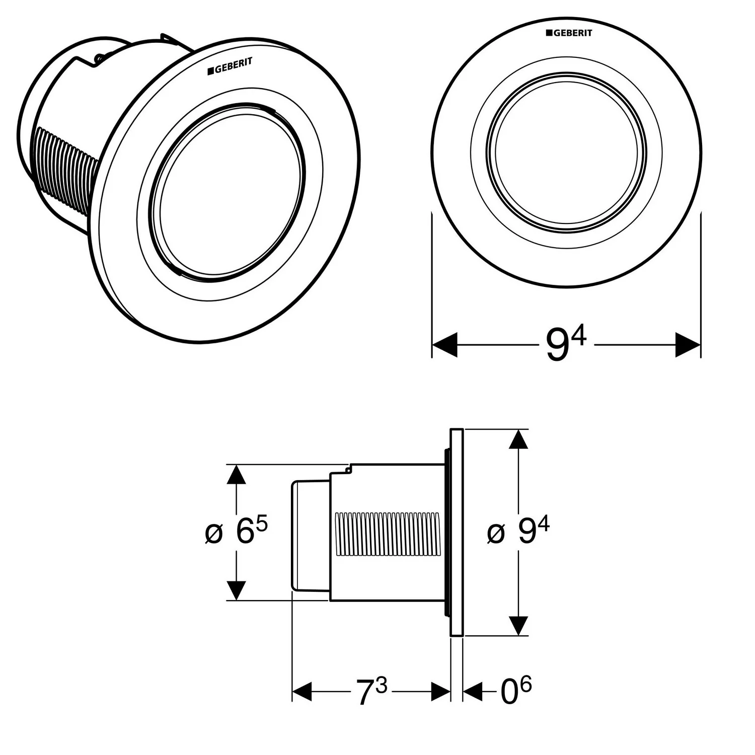 Geberit Typ 01 Fernbetätigung pneumatisch, für 1-Mengen-Spülung, UP-Drücker
