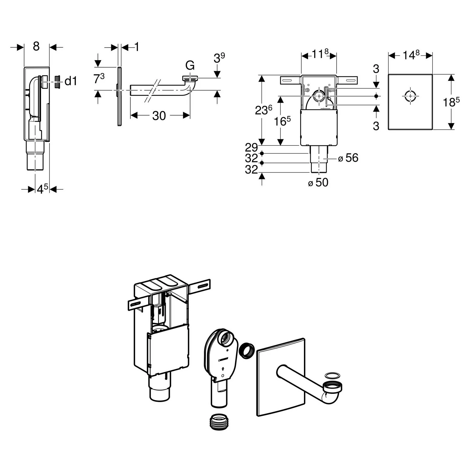- UP-Geruchsverschluss bei Fertigmontage ± 3 cm höhenverstellbar