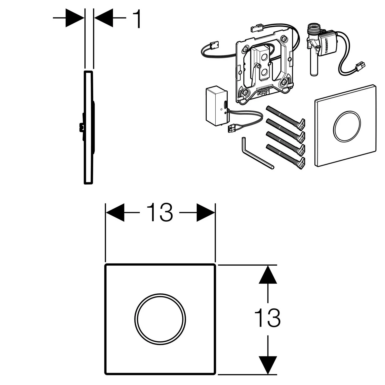 Geberit Urinalsteuerung mit elektronischer Spülauslösung, Netzbetrieb, Typ 10 Abdeckplatte Edelstahl