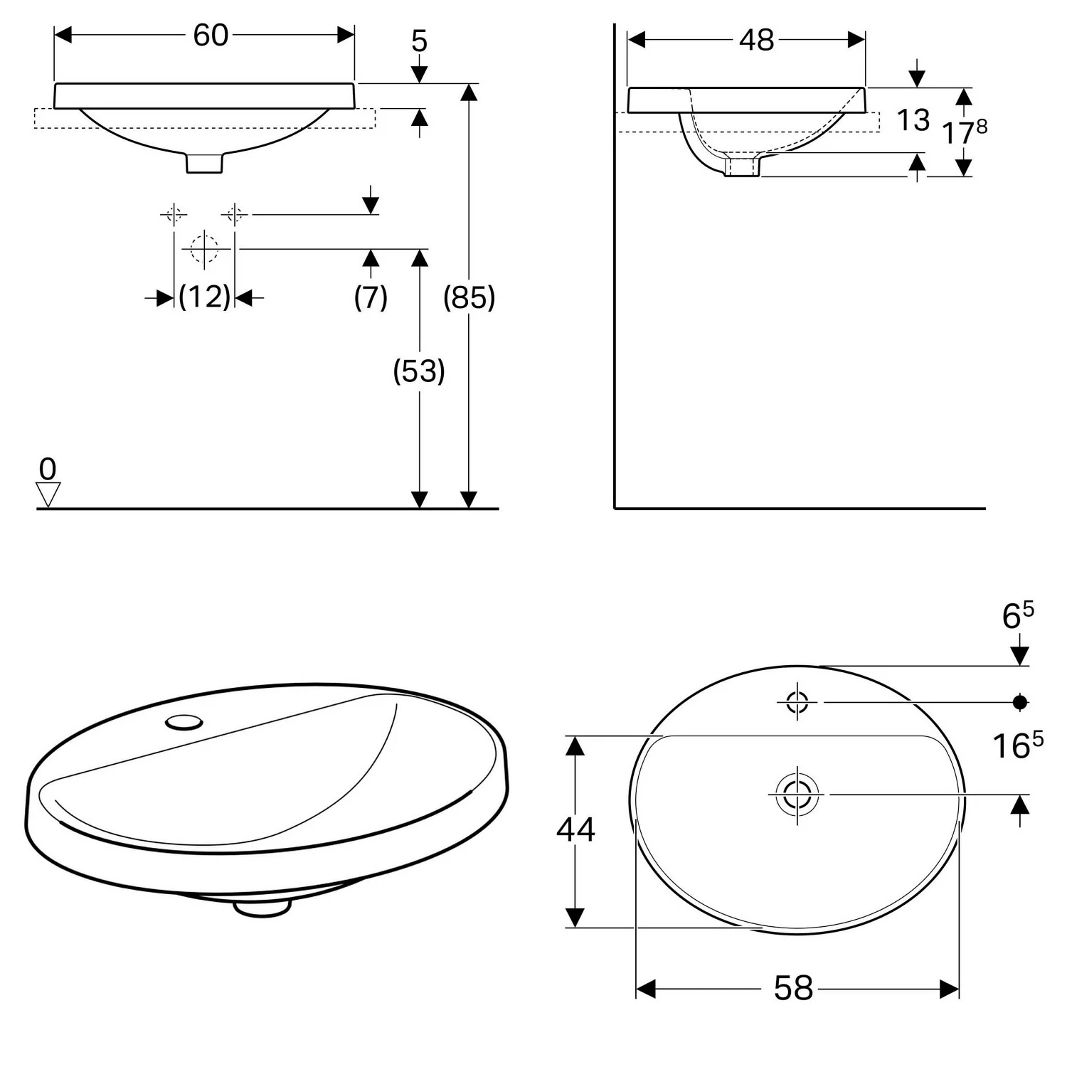 Geberit VariForm Einbauwaschtisch 60 x 45 cm, oval, mit Hahnlochbank