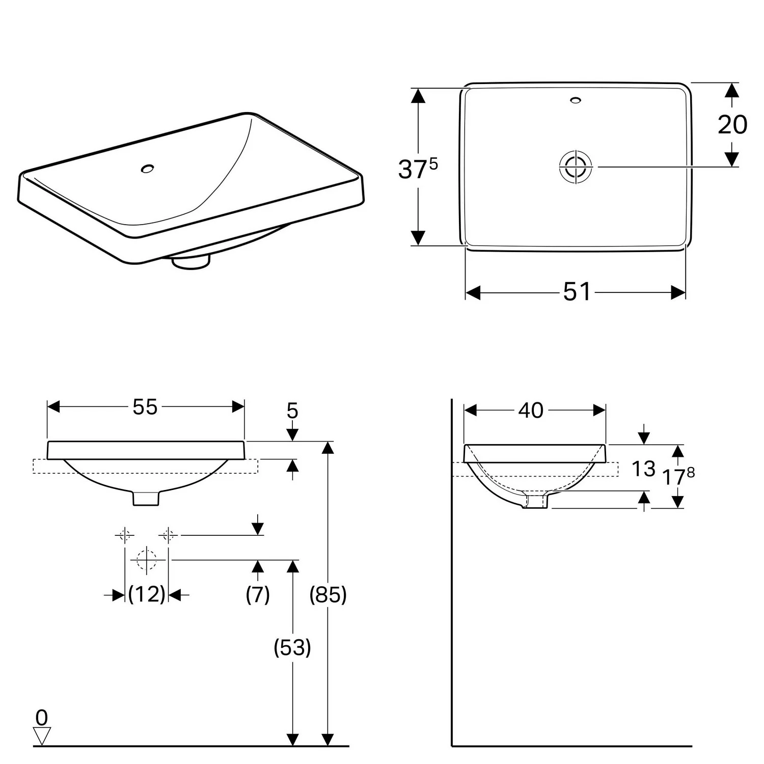 Geberit VariForm Einbauwaschtisch, rechteckig