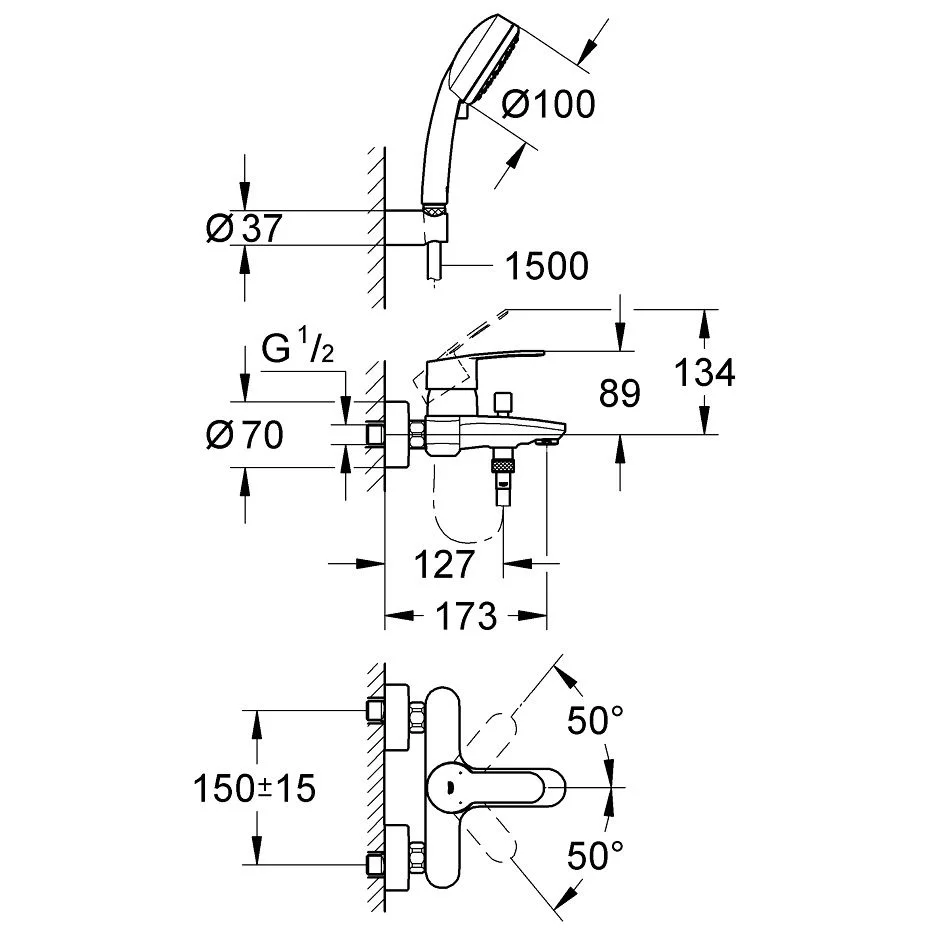 GROHE Eurostyle Cosmopolitan Einhand-Wannenbatterie mit Brausegarnitur