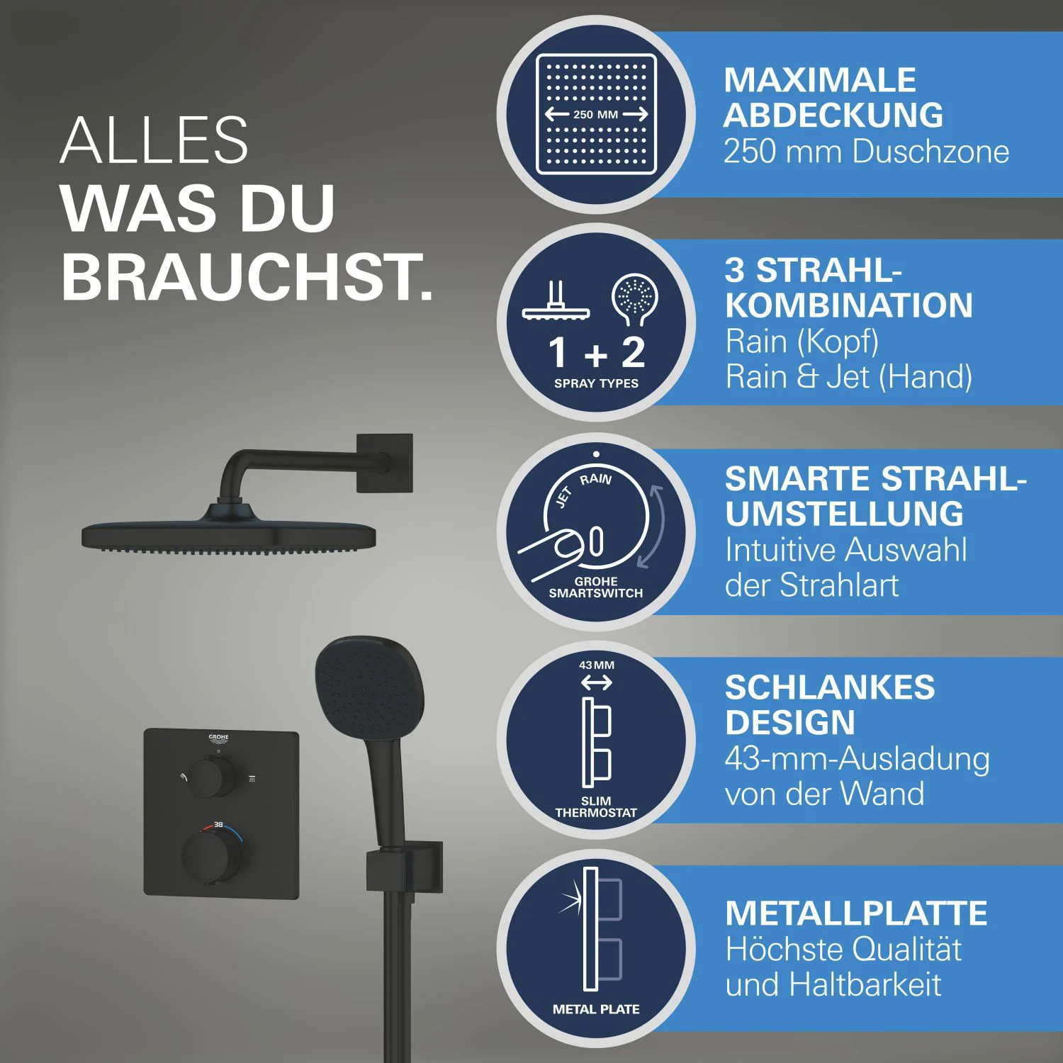 GROHE Precision Duschsystem, Unterputz, mit Vitalio Comfort 250, eckig