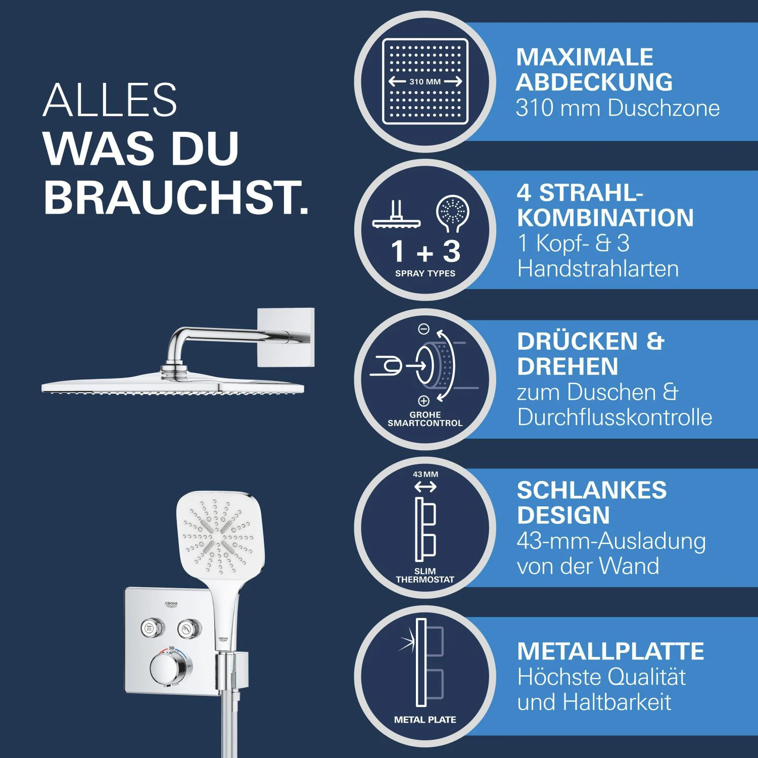 GROHE Precision SmartControl Duschsystem, Thermostat, UP, mit Vitalio Rain Mono 310, eckig