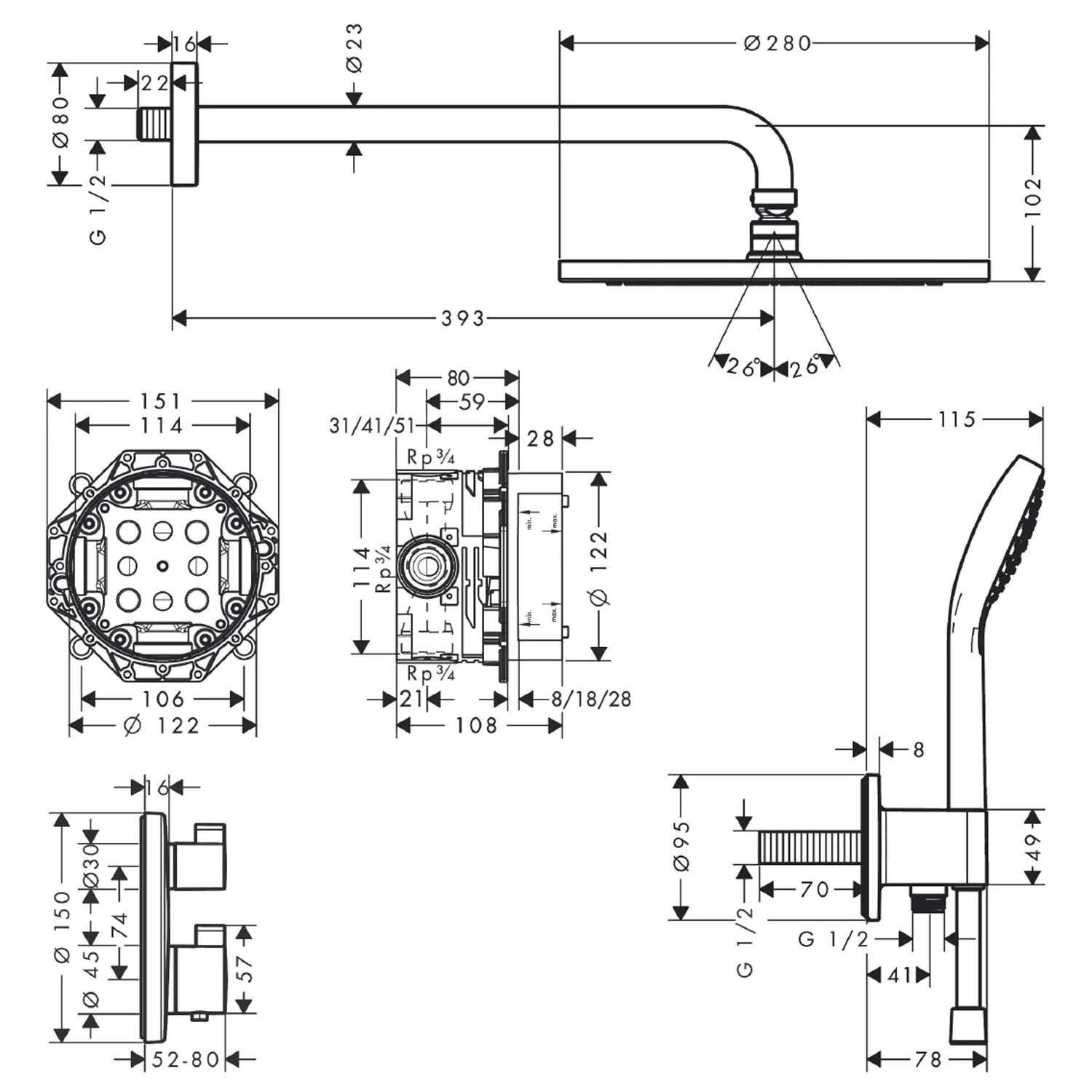 hansgrohe Croma Brausesystem 280, 1 Strahlart mit Ecostat S und Duschkopf 110 Vario