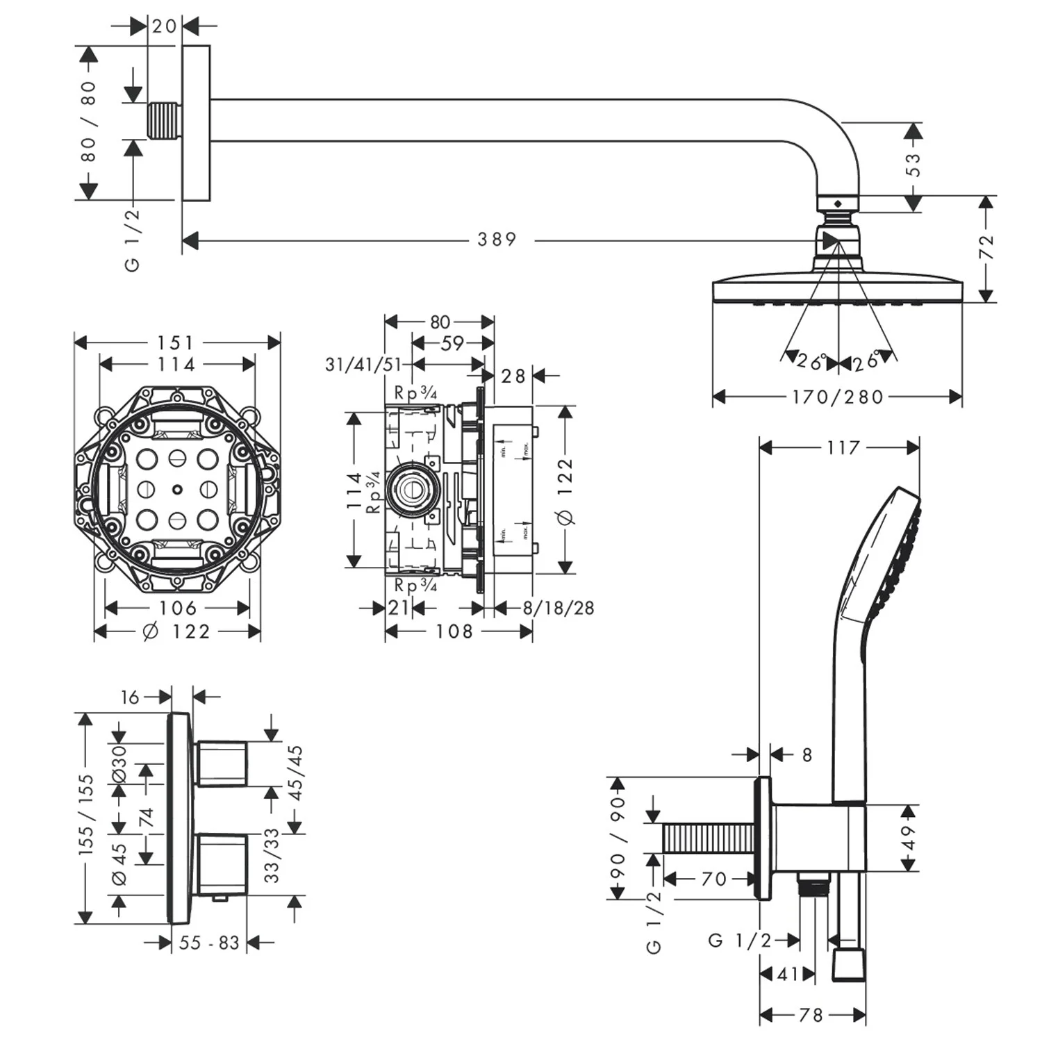 - Lieferumfang: Brausesystem, Befestigungsmaterial, Montageanleitung