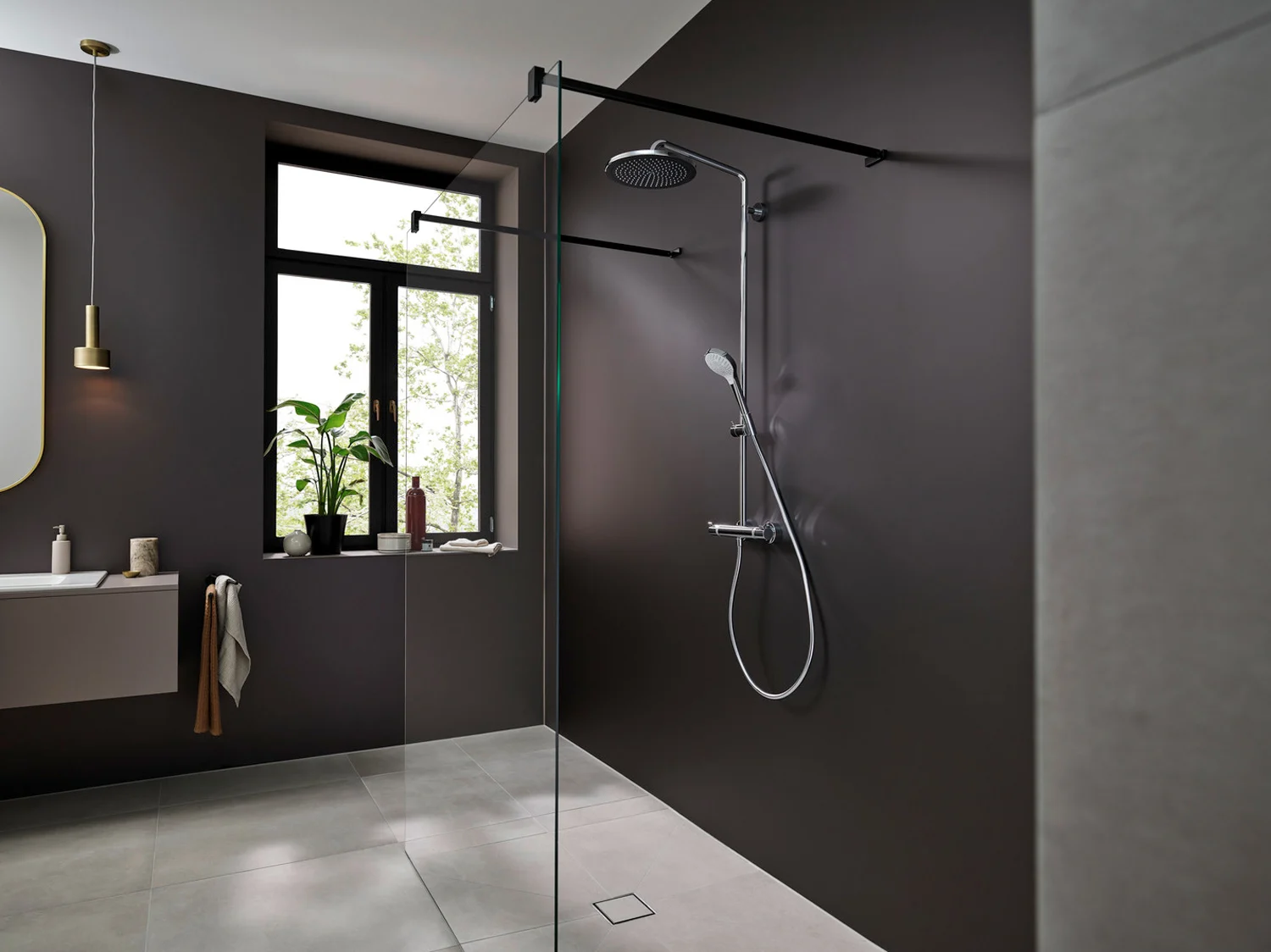 - Besteht aus: Kopfbrause, Handbrause, Brausethermostat, Brauseschlauch, Schieber