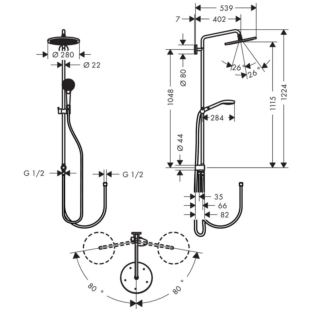 hansgrohe Croma Select 280 Air 1jet Showerpipe Reno
