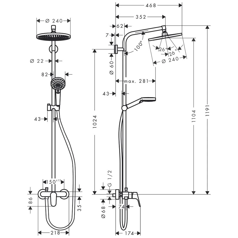 hansgrohe Crometta S 240 1jet Showerpipe mit Einhebelmischer
